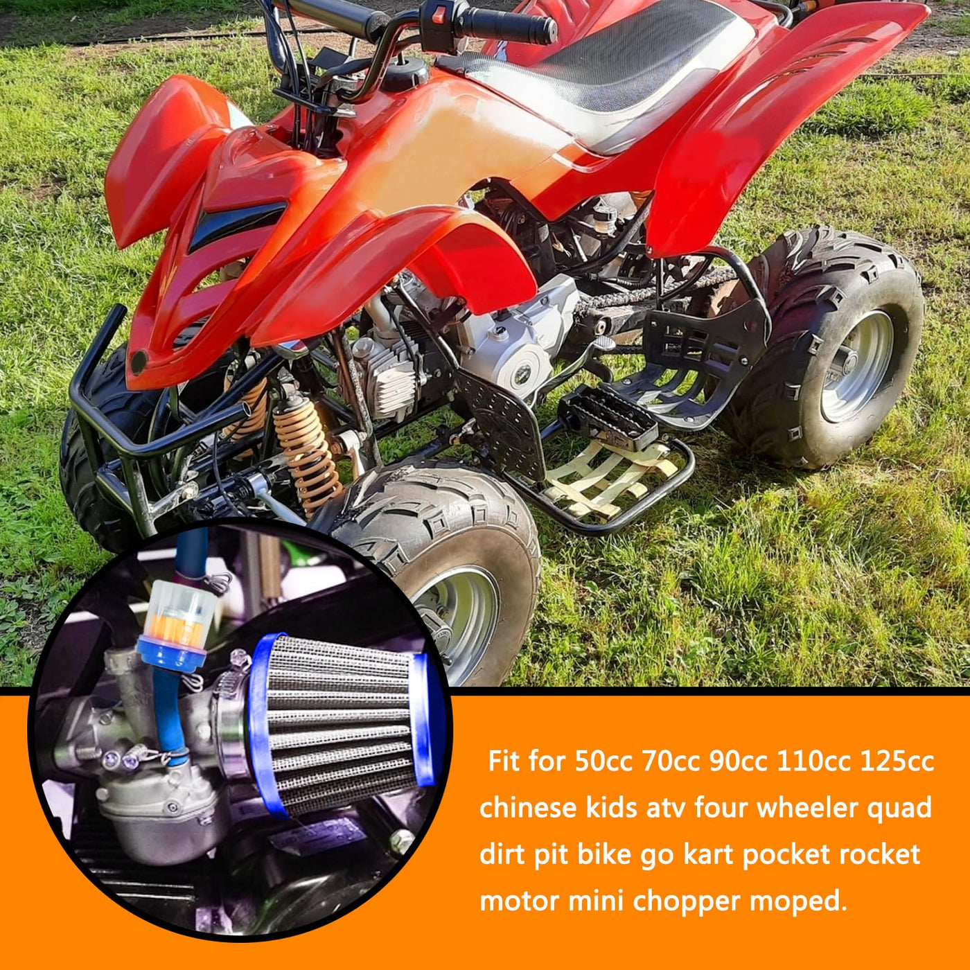 Fitment -PZ20 Carburetor Carb Air filter Gas fuel line hose with shut off valve petcock Kit for 50cc 70cc 90cc 110cc 125cc chinese kids atv four wheeler moped quad dirt pit bike go kart,such As: Roketa Sunl Taotao Coolster Apollo lifan Baja X-Pro Icebear Kazuma Vitacci Venom Buyang Coolsport Redcat. Fitment -Fit Tao tao ATA-125D ATV, Tao tao ATA-110B ATV, Tao tao 110cc Boulder B1 Kids ATV, Tao tao 110cc 125cc TFORCE Kids ATV, Tao tao T-Force (T125) Youth ATV. Hond* XR50R XR70 XR80 XR80R CRF70 CRF80F XL75 dirt pit bike(Not fit on crf50).