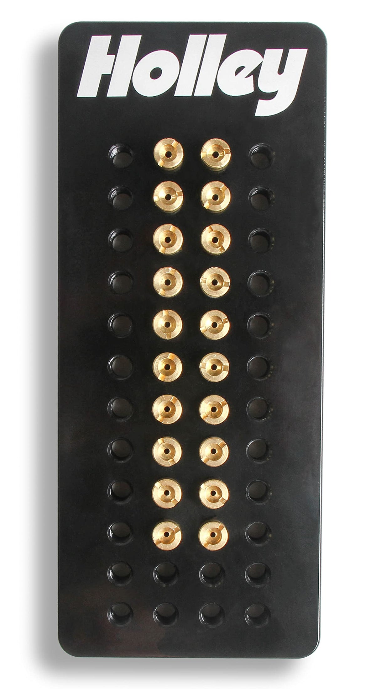 Q: What materials are used in the Holley 122-240 Jet Assortment Kit?A: The jets in the Holley 122-240 kit are made from high-quality materials to ensure durability and performance. The kit features genuine Holley parts, ensuring optimal function and reliability.