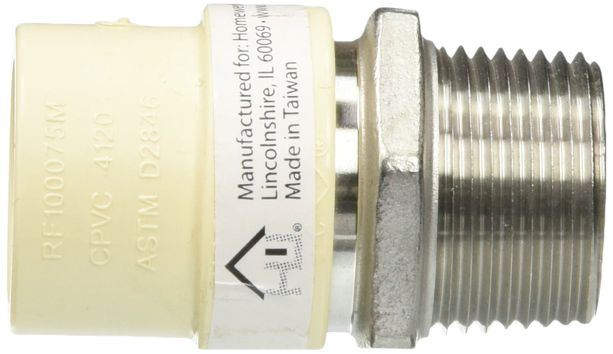 homewerks worldwide llc 539-34-34-b 3/4' Male Iron Pipe Threaded, Stainless Steel x CPVC Transition Adapter