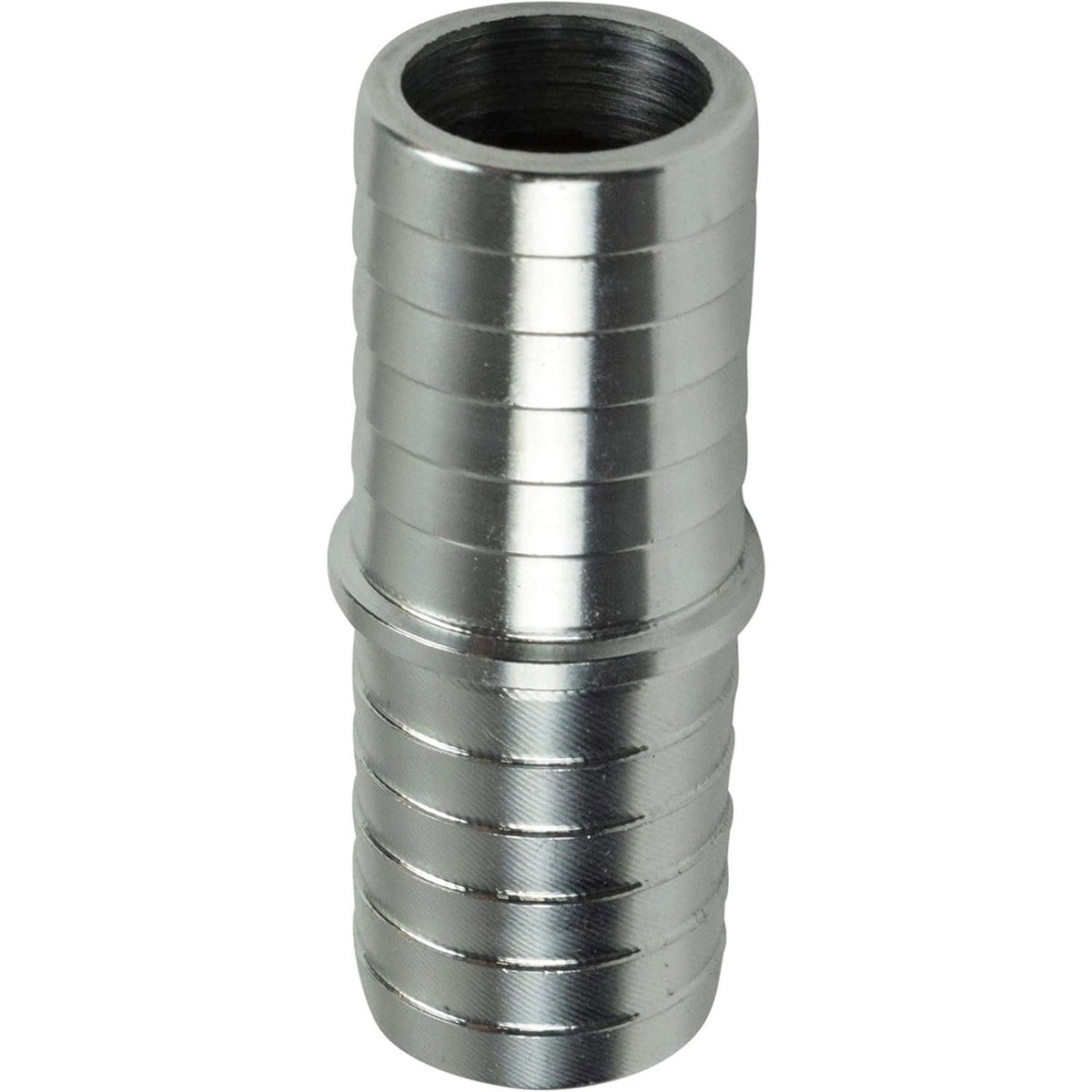 3/4'' to 3/4'' O.D. Hose Barb Coupler This fitting has a 3/4'' barb on both sides of the fitting with a hose stop flange to keep the coupler centered in the splice connection. Commonly used to couple or repair your radiator hose, brake booster hose, vacuum line, or any other hoses together. Made in Wichita, Kansas from aerospace grade, USA produced billet aluminum Bare aluminum finish This Package Includes 1 hose barb splice