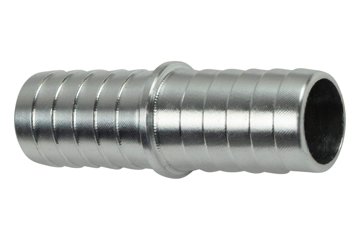 5/8'' to 5/8'' O.D. Hose Barb Coupler This fitting has a 5/8'' barb on both sides of the fitting with a hose stop flange to keep the coupler centered in the splice connection. Commonly used to couple or repair your radiator hose, brake booster hose, vacuum line, or any other hoses together. Made in Wichita, Kansas from aerospace grade, USA produced billet aluminum Bare aluminum finish This Package Includes 1 hose barb splice