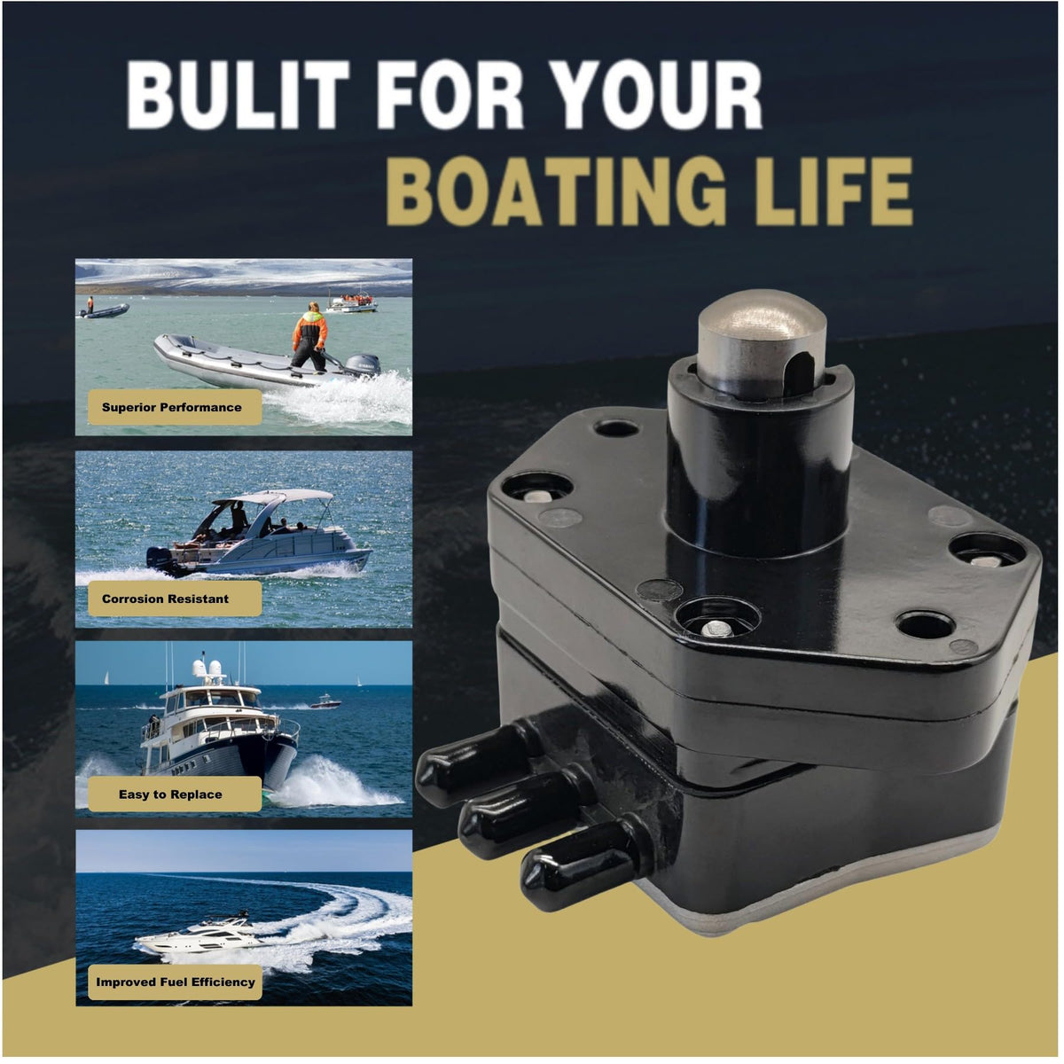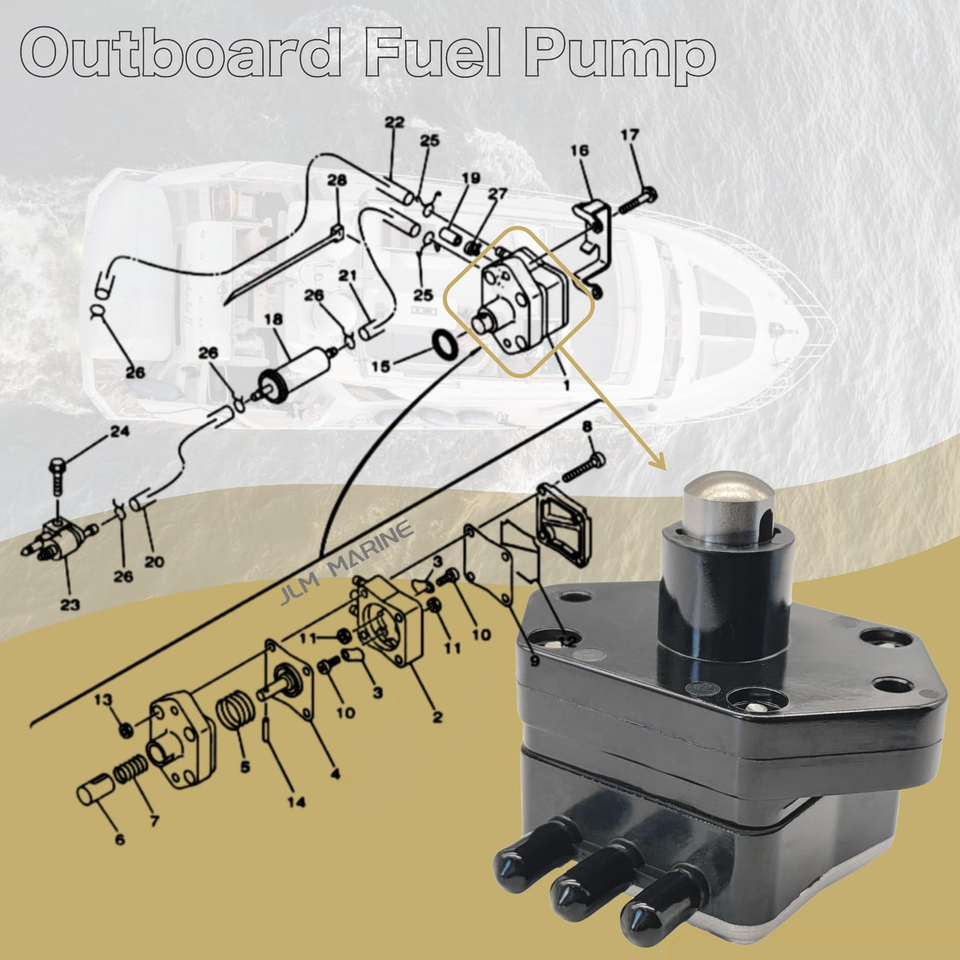 Jlm Marine 62Y2441004 Fuel Pump For Yamaha And Mercury 4 Stroke F 25 30 35 40 45 50 55 60 Hp Outboard Motor 62Y-24410-02 826398A