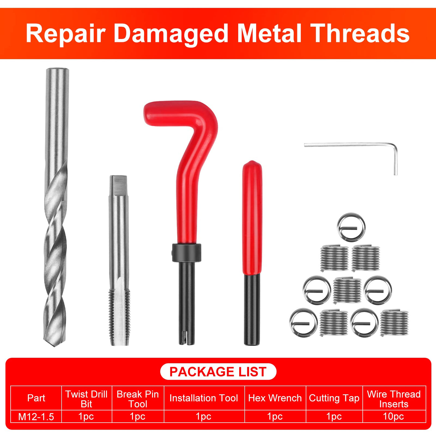 Why Choose Our 15Pcs Thread Repair Tool Kit 15Pcs Thread Repair Tool Kit, All Made According To Professional Standard, With A Storage Box, Each Accessory Has Its Place, For Easy Transport And Storage Between Jobs High-Quality Craftsmanship The Thread Repair Tool Kit Made From Precision Stainless Steel Wire For Strength And Durability, The Handle Is Made Of High-Quality Rubber, Ergonomically Designed, Non-Slip And Easy To Grip Widely Used This Thread Repair Kit Is For M12 To Repair Damaged Or Worn Out Threads, This Kit Helps Create A Stronger Internal Thread In Soft Metals And Protects Tapped Threads Against Wear And Damage, Ideal For Engine Repair And Other Automotive Applications