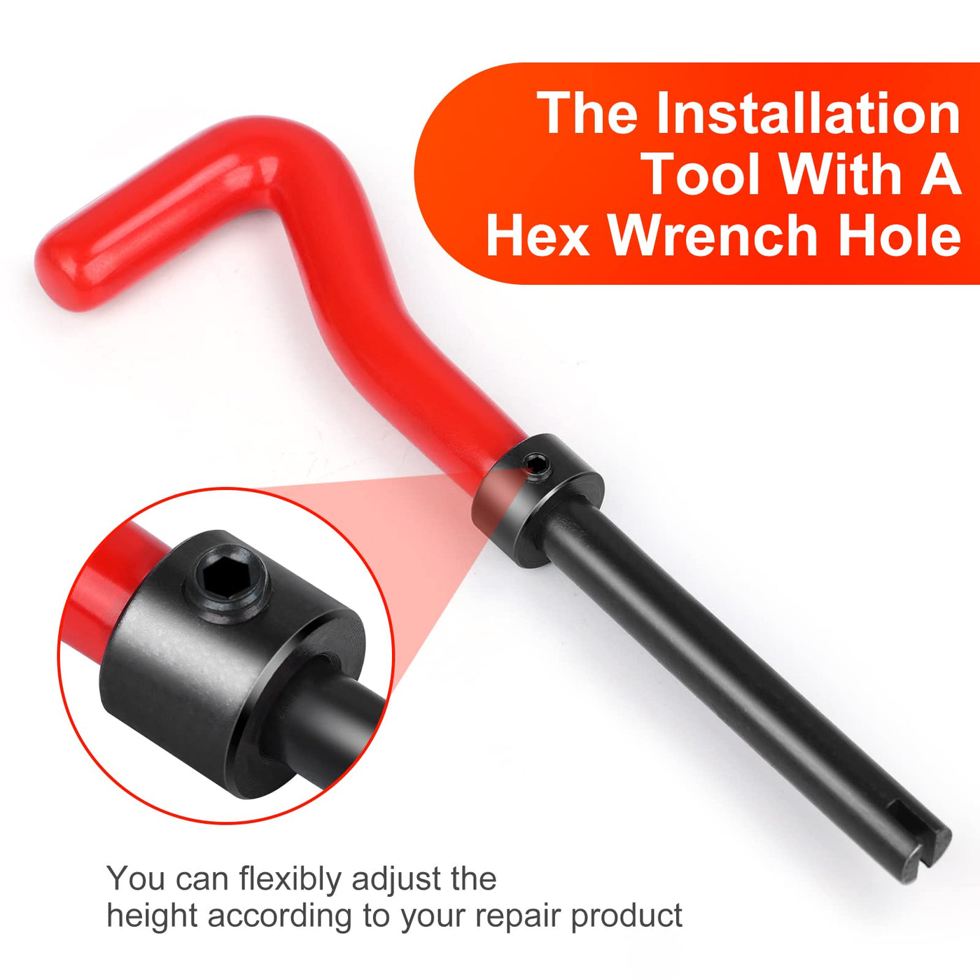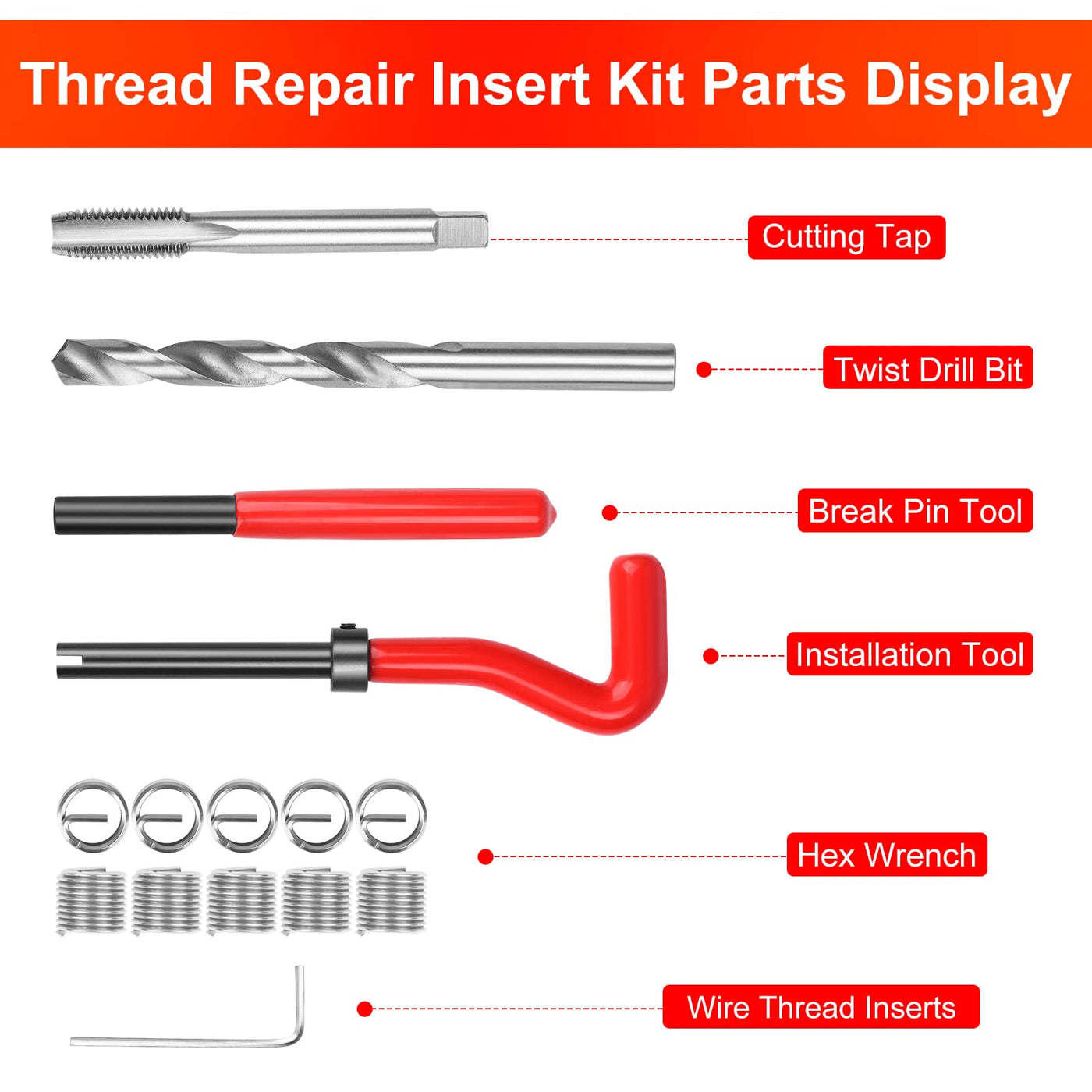 Why Choose Our 15 Pcs Thread Repair Tool Kit 15 Pcs Thread Repair Tool Kit, All Made According To Professional Standard, With A Storage Box, Each Accessory Has Its Place, For Easy Transport And Storage Between Jobs High-Quality Craftsmanship The Thread Repair Tool Kit Made From Precision Stainless Steel Wire For Strength And Durability, The Handle Is Made Of High-Quality Rubber, Ergonomically Designed, Non-Slip And Easy To Grip Widely Used This Thread Repair Kit Is For M10 To Repair Damaged Or Worn Out Threads, This Kit Helps Create A Stronger Internal Thread In Soft Metals And Protects Tapped Threads Against Wear And Damage, Ideal For Engine Repair And Other Automotive Applications