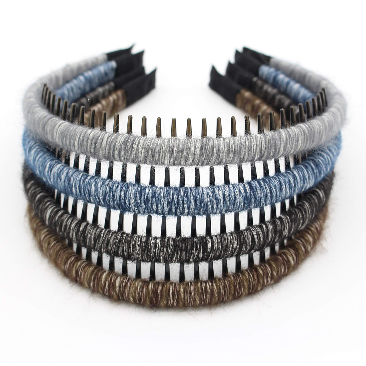 Joband Fashion Hair Headband Hairbands For Women Non-Slip Hair Accessories Wool Knit Hair Band Resin Comb Teeth Hair Hoop (4 Col