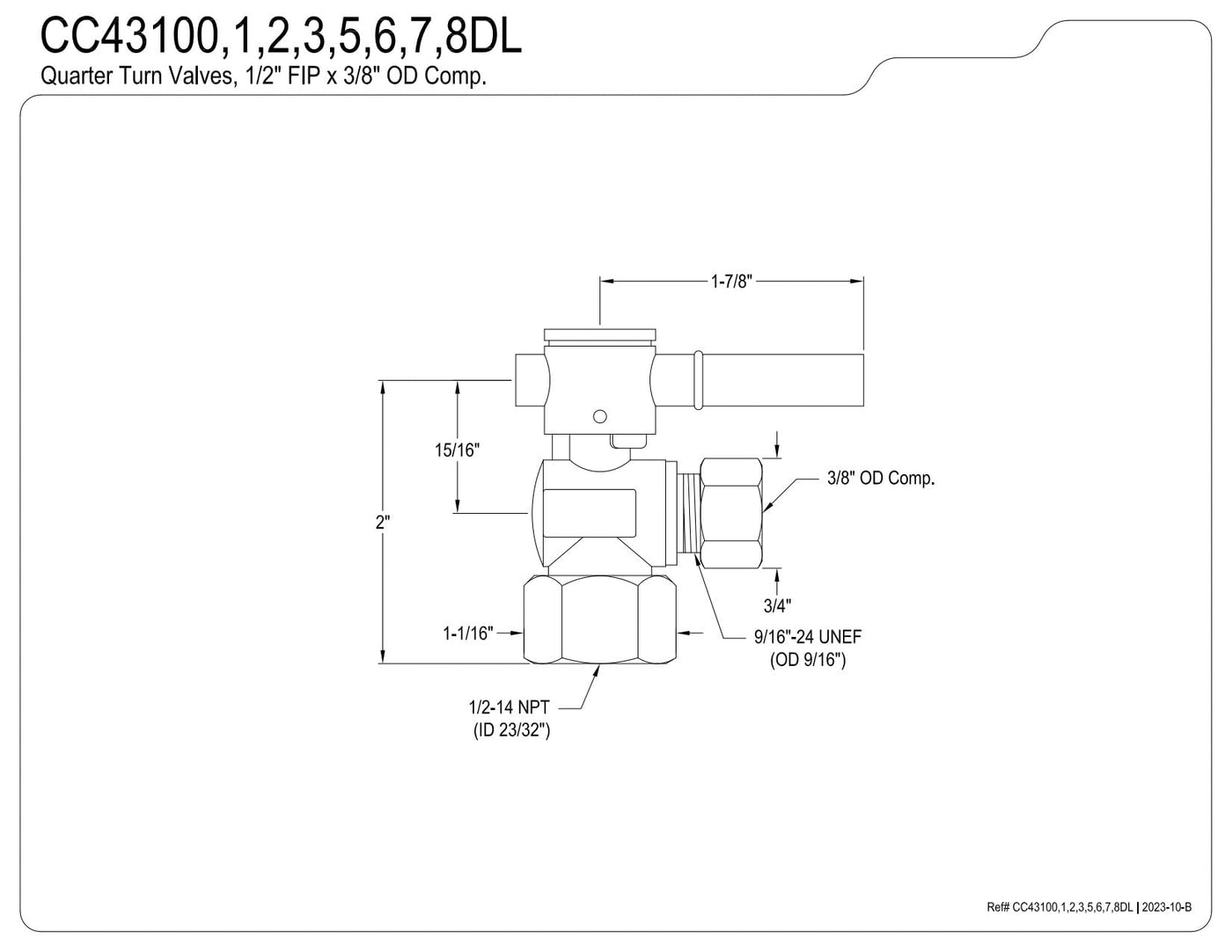 Q: What is the size compatibility of the Kingston Brass CC43108DL Ball Valve?A: The Kingston Brass CC43108DL Ball Valve is designed to fit 1/2-Inch FIP and 3/8-Inch O.D. Compression connections, making it suitable for various plumbing applications.