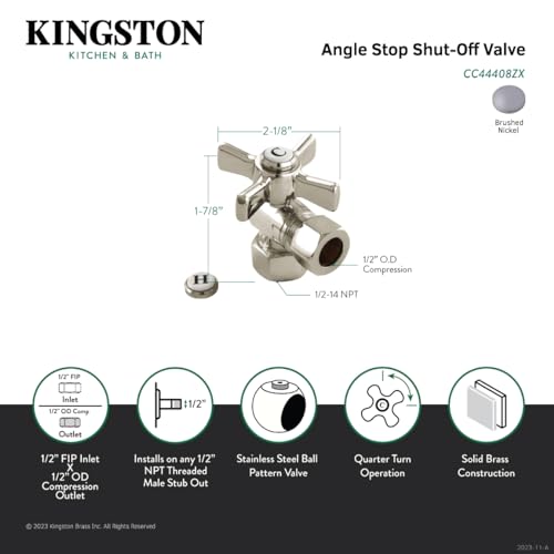 Q: What finishes are available for this angle stop valve?A: The KINGSTON BRASS CC44408ZX Angle Stop Valve comes in a brushed nickel finish, which is not only stylish but also corrosion-resistant for enhanced longevity.