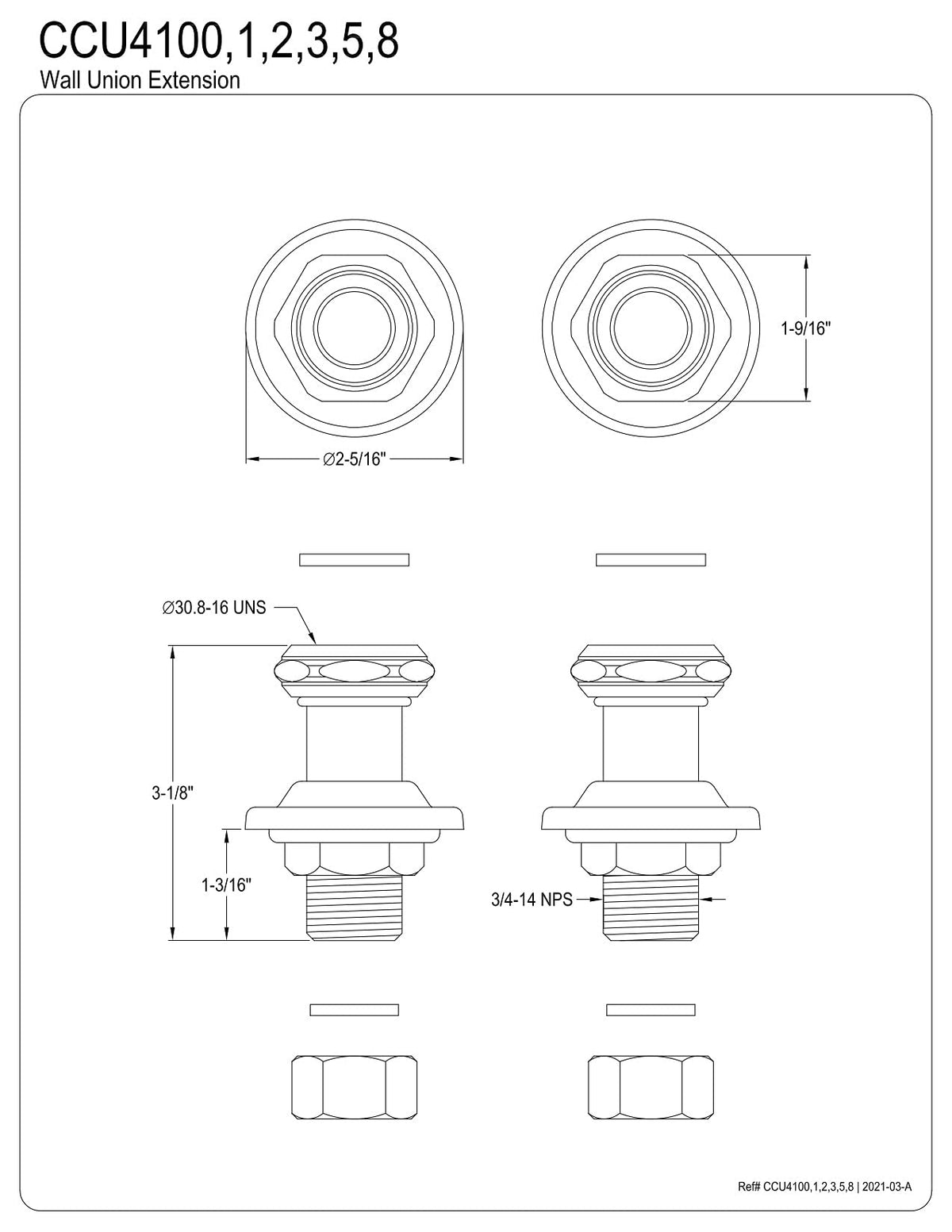 Kingston Brass CCU4108 Vintage Wall Union Extension, Brushed Nickel