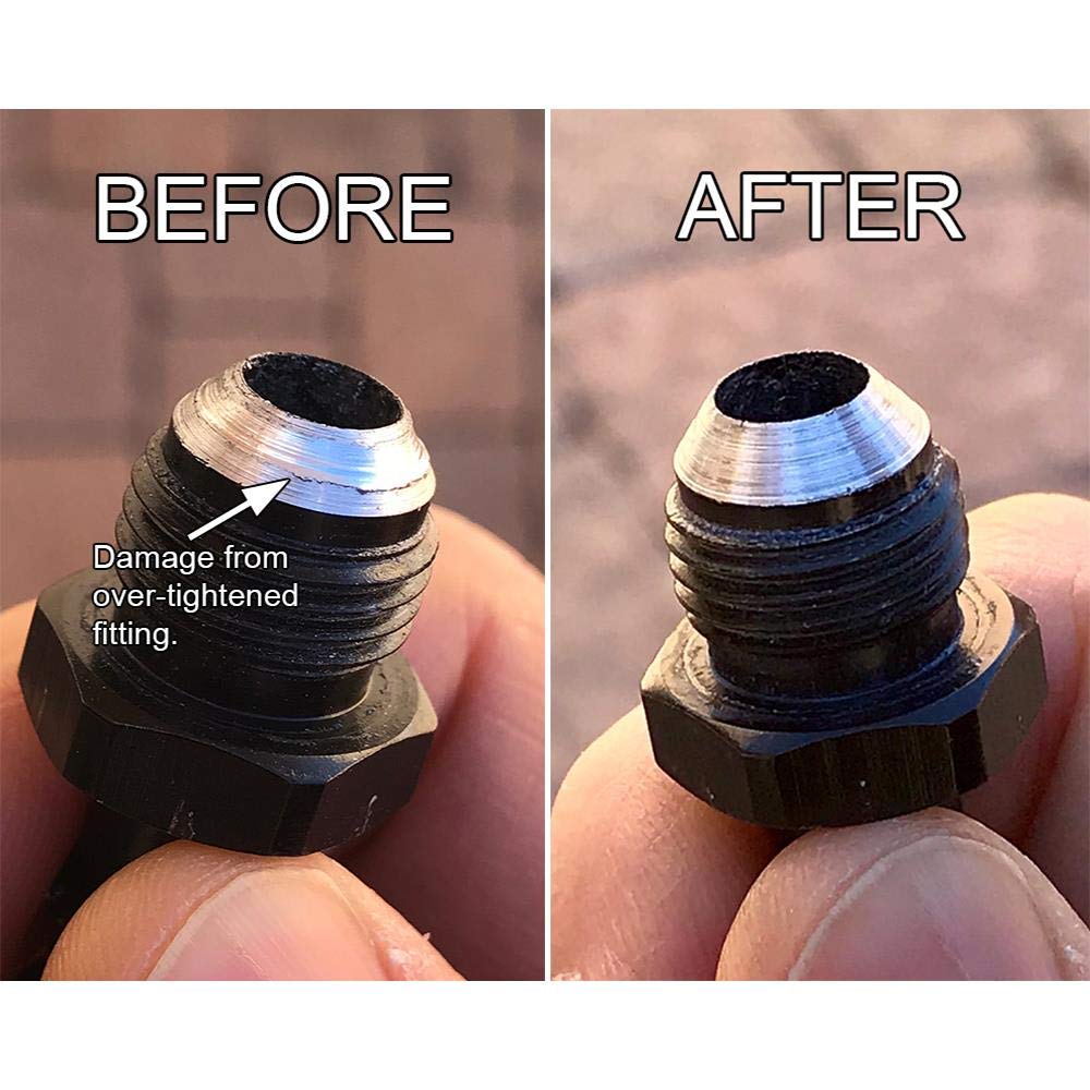 Q: What types of fittings can the Koul Tools FF4 Fitting Fixer repair?A: The Koul Tools FF4 Fitting Fixer is designed to repair the sealing surfaces on 37° steel and aluminum fittings, making it ideal for automotive and mechanical applications.