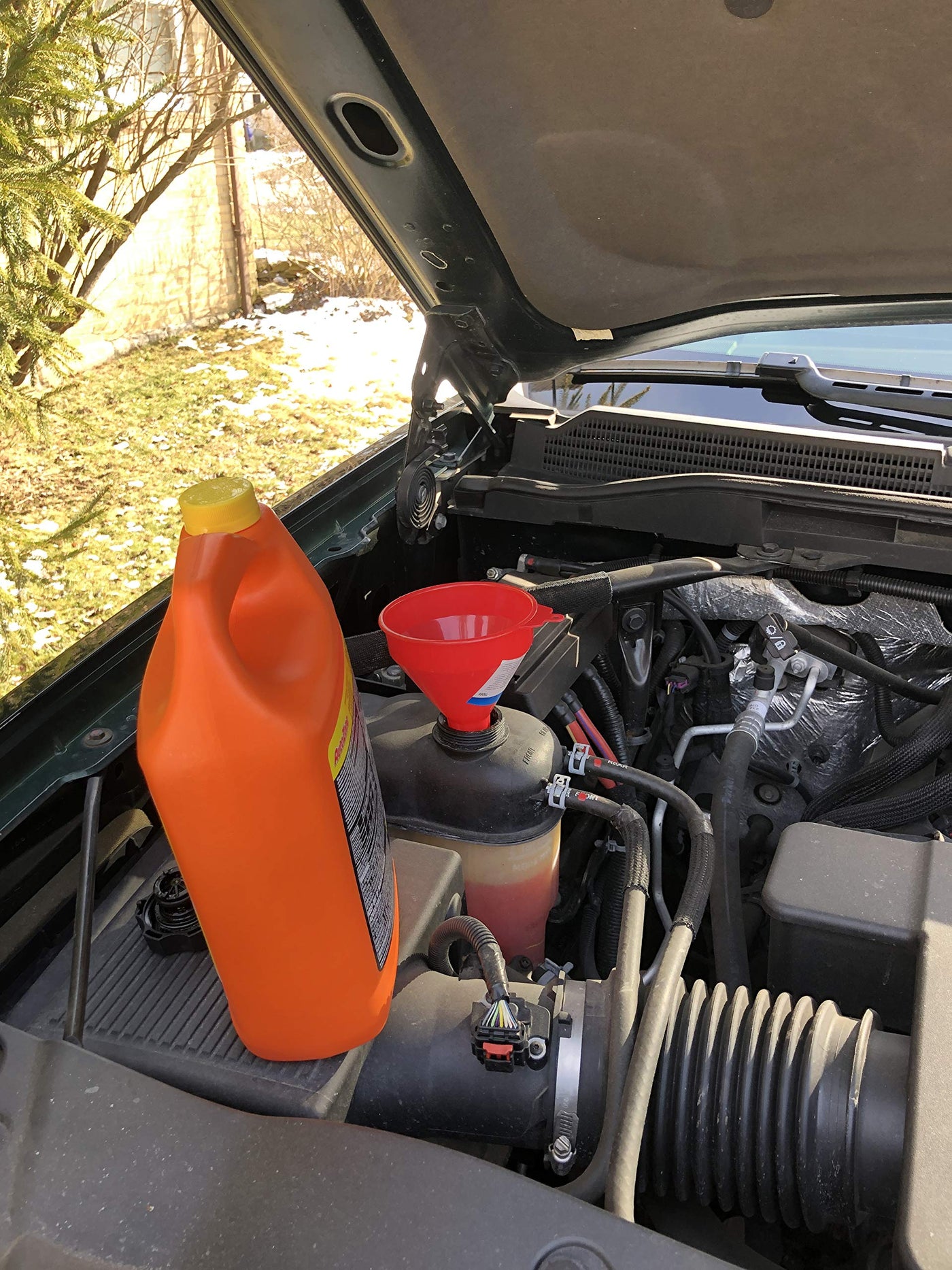 Q: What materials is the LubriMatic funnel made of?A: The funnel is made of durable red polyethylene plastic, ensuring long-lasting performance and resistance to various automotive fluids.