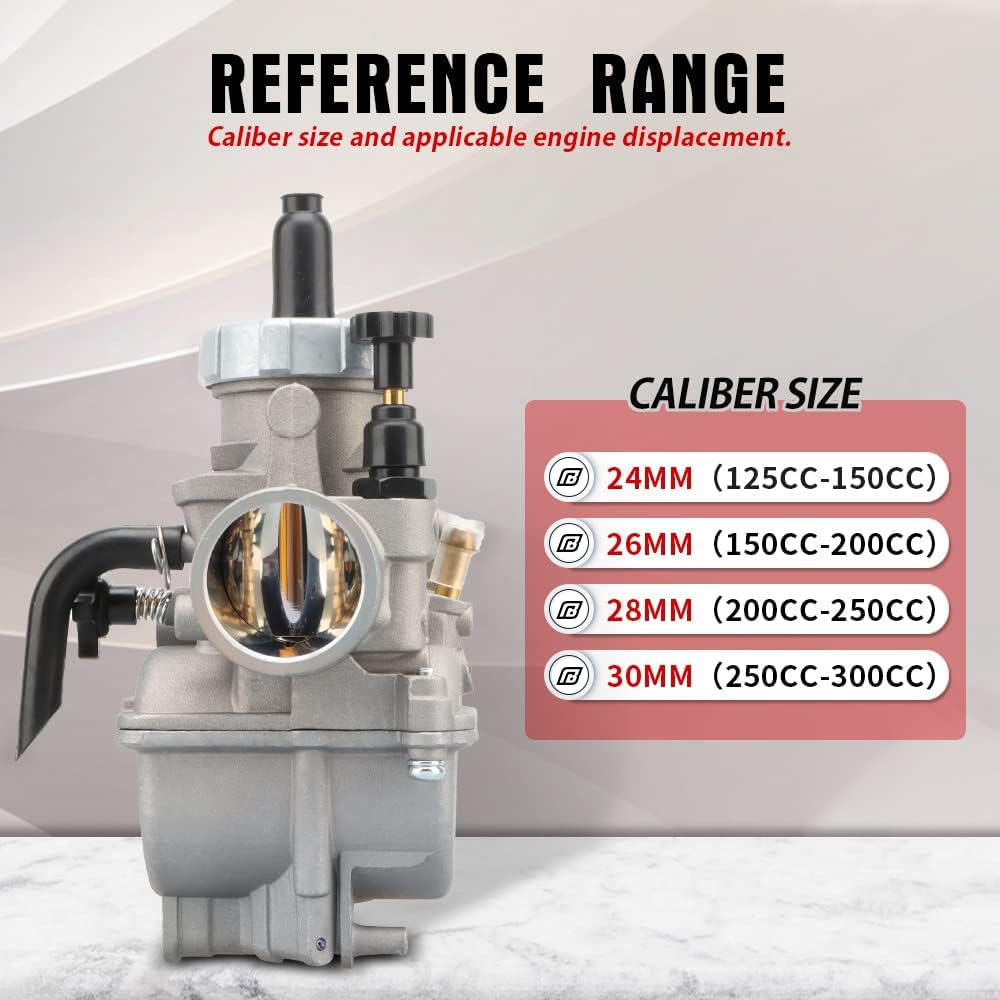 ABOUT US Nibbi takes the ultimate power design concept as the core, through the design and innovation of motorcycle racing carburetors. Established its position as an innovation leader in the motorcycle accessories industry. In order to allow world-class racing cars to exert their extreme power, Nibbi expanded its product line to motorcycle power systems, and continued to improve, develop and innovate based on its performance in various events (such as MXGP, Romaniacs, Erzberg, etc). In the fashion and leisure riding, Nibbi began to create fashion-leading motorcycle sports equipment foryoung people, and continued to innovate and develop on this basis. Note: Please check the dimensions of this carburetor, shown in the second and third pictures! If you are not sure if it is suitable for your motorcycle, you can contact us. Provide your motorcycle model. Best to take a picture of the carburetor and upload them to us. We will provide you with the perfect solution. Specification: Color: As Pictures Material:Aluminum Alloy Engine side: 35mm(1.37 inch)OD 30mm(1.18inch) ID Airbox side: 49mm(1.92 inch)OD Height: 150mm(5.90 inch) Width: 82mm(3.22 inch) Suitable for 250cc~300cc engines Package includes: 1 x carburetor 4 x jets 2 x sticker 1 x manual