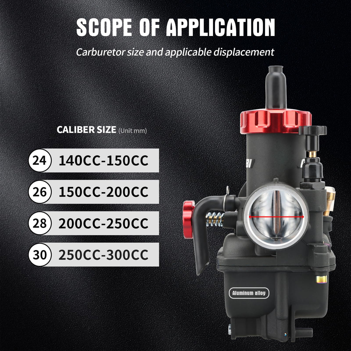 NIBBI Replacement High Performance PE28mm 250cc Carburetor with Carb Jets, Fit 200cc-250cc YAMAHA KAWASAKI SUZUKI Apollo SSR TTR KYMCO SYM TAOTAO ATV Dirt Bike Pit Bike GY6 Motorcycle Scooter Moped.