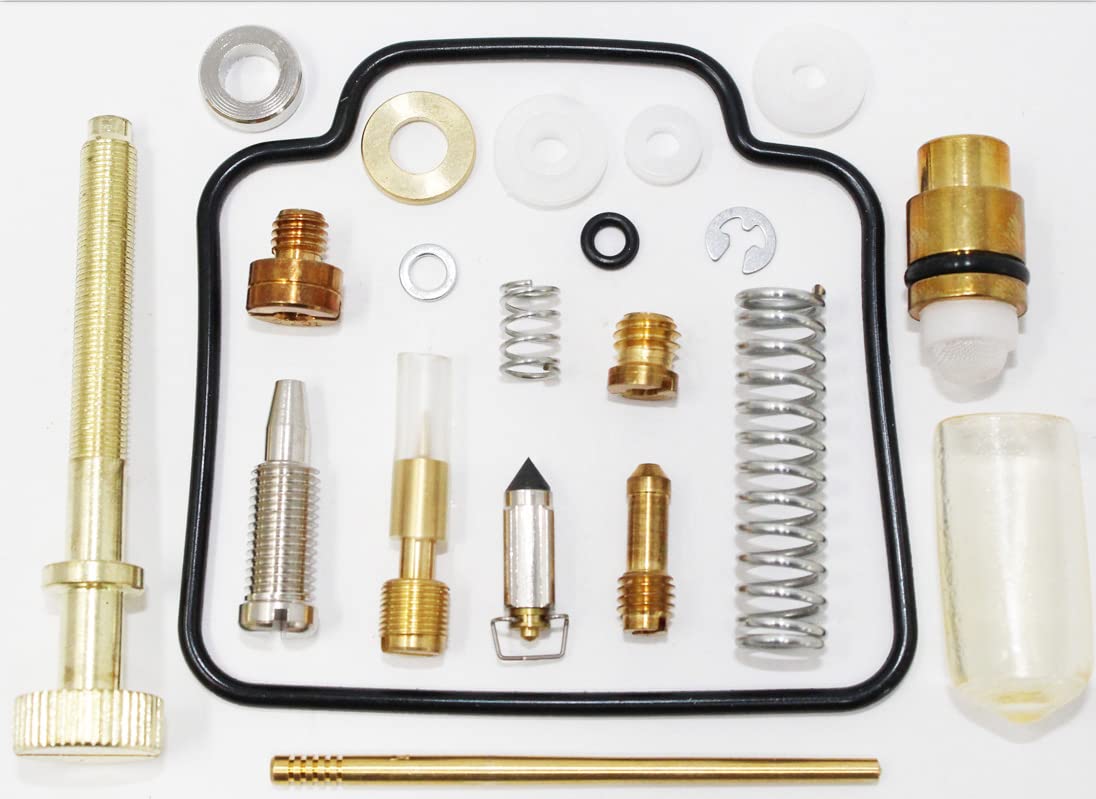 Q: What components are included in the carburetor rebuild kit?A: This kit includes all essential components for a complete carburetor rebuild, such as gaskets, o-rings, springs, main jet, slow jet, and float needle, allowing you to restore your carburetor to peak performance.