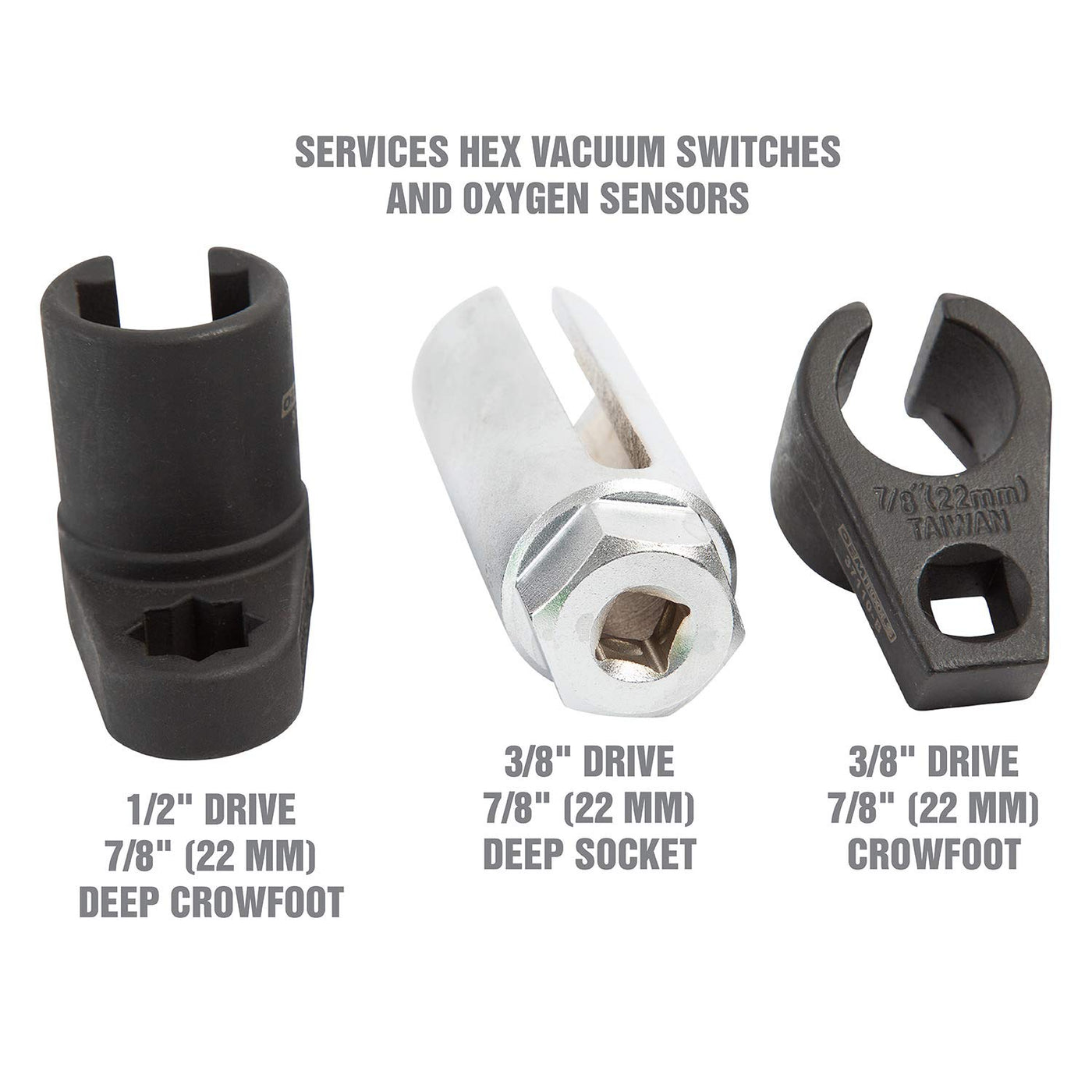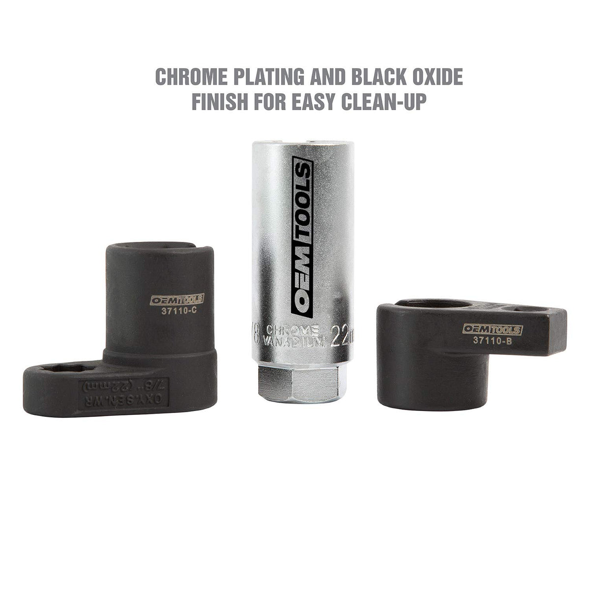 Oemtools 37110 Oxygen Sensor Socket Set, 3 Piece O2 Sensor Wrench Kit With Case, 22Mm O2 Sensor Socket Tools For 3/8 Drive And 1/2 Drive Sensor Remover And Installer, Oxygen Sensor Wrench