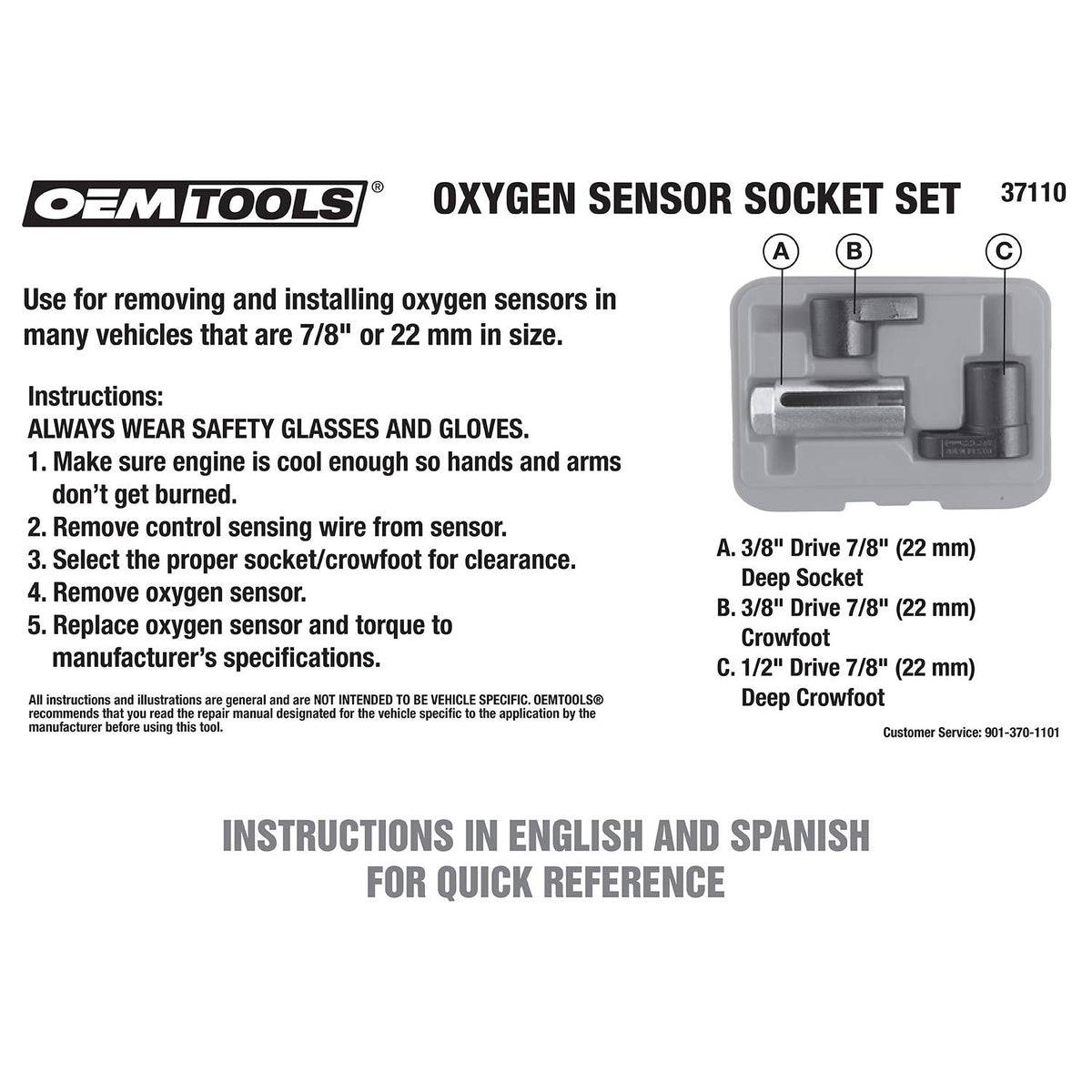 The Oemtools 37110 Oxygen Sensor Socket Set Is A Universal Slotted Oxygen Sensor Tool Kit That Installs, Removes, And Services Automotive Hex Vacuum Switches And Oxygen Sensors. A Standard 6 Point Design With A Low Profile And Side Cutout Makes It Possible To Remove Sensors Safely With The Wiring Harness Still Attached. The O2 Sensor Tool Is Offset And Compact, Allowing Extra Leverage In Confined Spaces, And Compatible With Common 3/8 And 1/2 Drive Wrenches And Ratchets. Don'T Wrestle With Diy Fixes When You Need A Specialty Tool. This Professional Grade 22 Millimeter, Or 7/8 Inch, O2 Sensor Socket Set Is Applicable For Most Vehicles On The Road Today, Both Imported And Domestic. The Oemtools 37110 Oxygen Sensor Socket Set Includes A High Quality Custom Storage Case For Easy Identification And Portability.