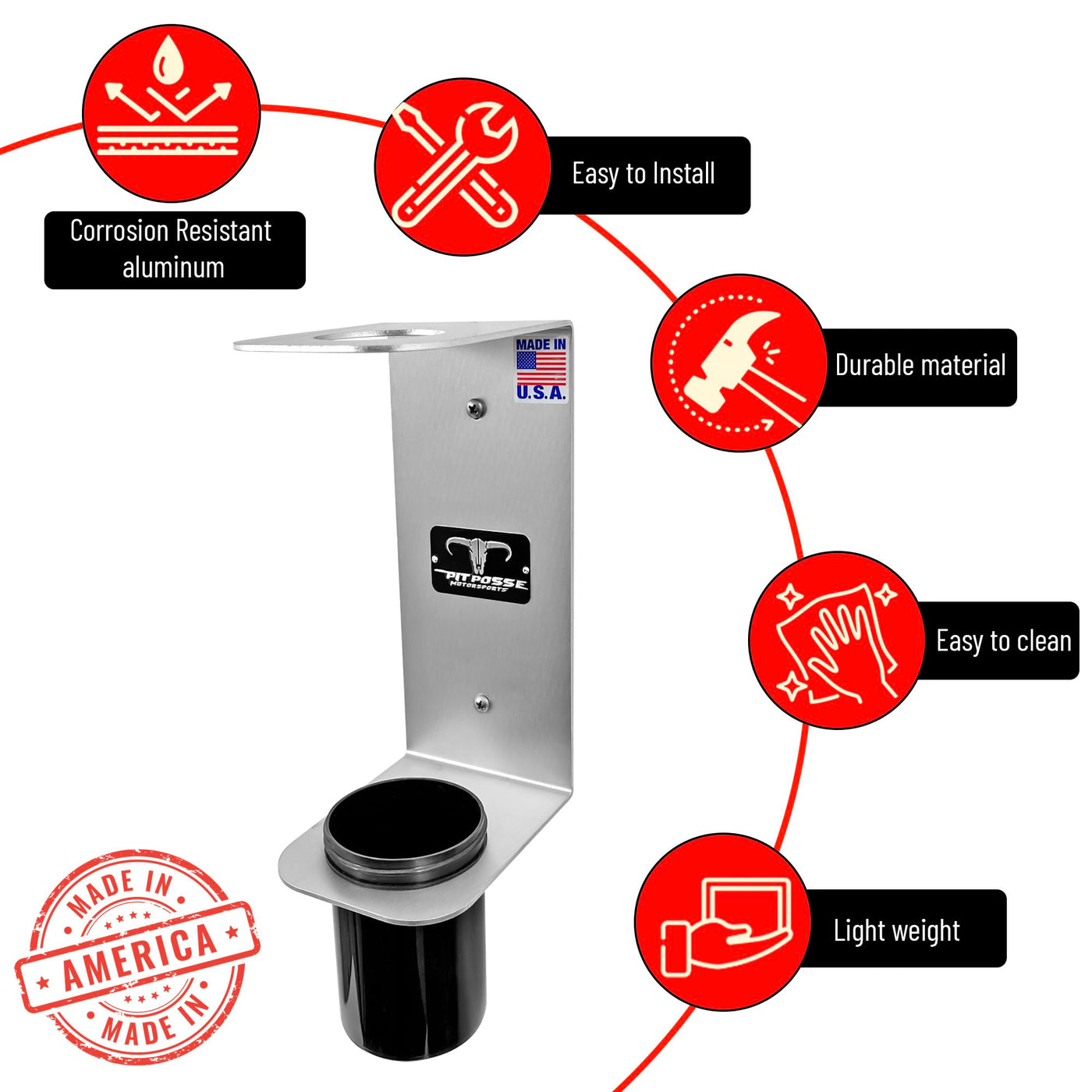 Pit Posse Pp3364 Aluminum Oil Funnel Holder Storage Rack - Enclosed Trailer Garage Shop -Made In Usa- Wall Mount Fluid Drain Fun