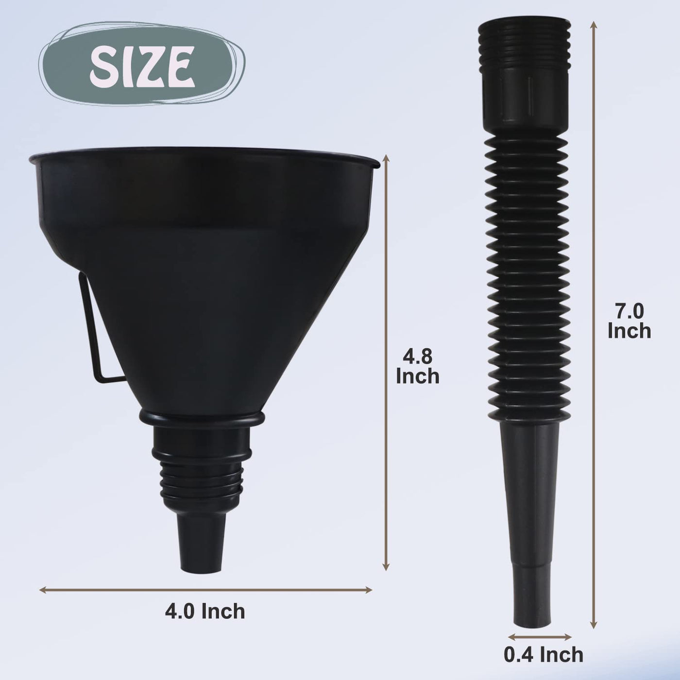 Q: Can I use these funnels for transferring fuel or oil?A: Absolutely! The set includes a flexible oil funnel specifically designed for automotive use, making it perfect for transferring gas, oil, and lubrication without spills.