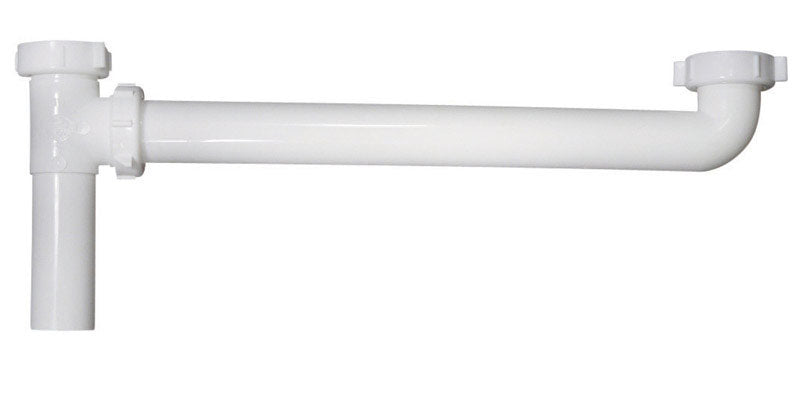 White Polypropylene 16-Inch long end Outlet continuous waste with direct connect baffle tee. 1-1/2-Inch Inlet.