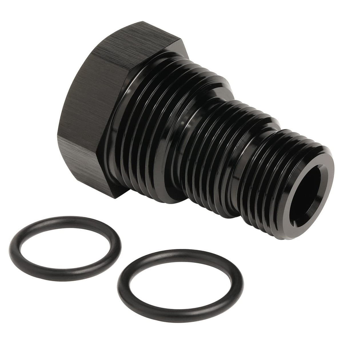 Specifications: Material: 6061 T6 Aluminum Size: Female 1/2-28 To Male 3/4-16, 13/16-16 And 3/4 Npt Surface Treatment: Anodized Black