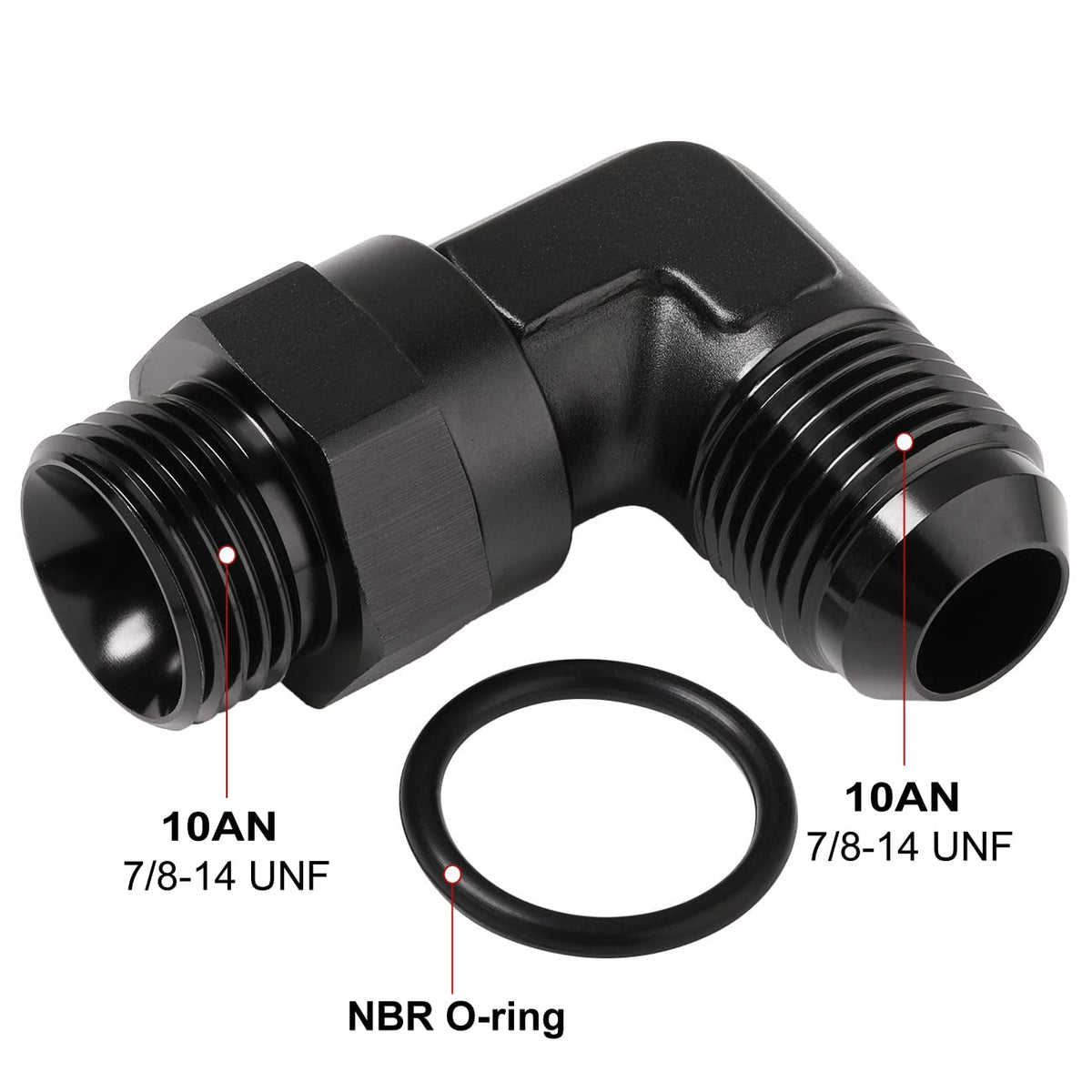 Podavelle 10An Male Flare To 10An -10 Orb O-Ring Boss 90 Degree Swivel Fitting Adapter Aluminum Black