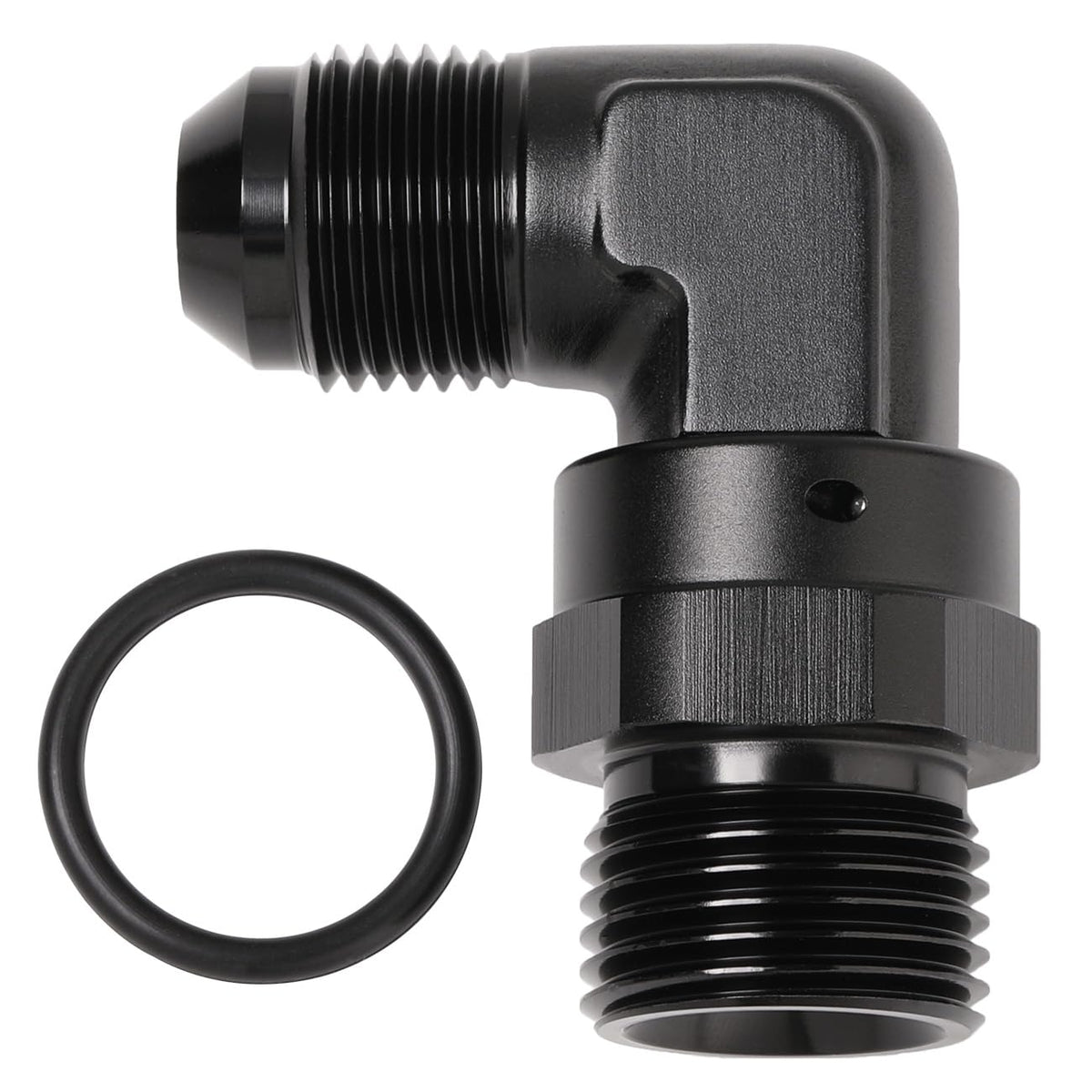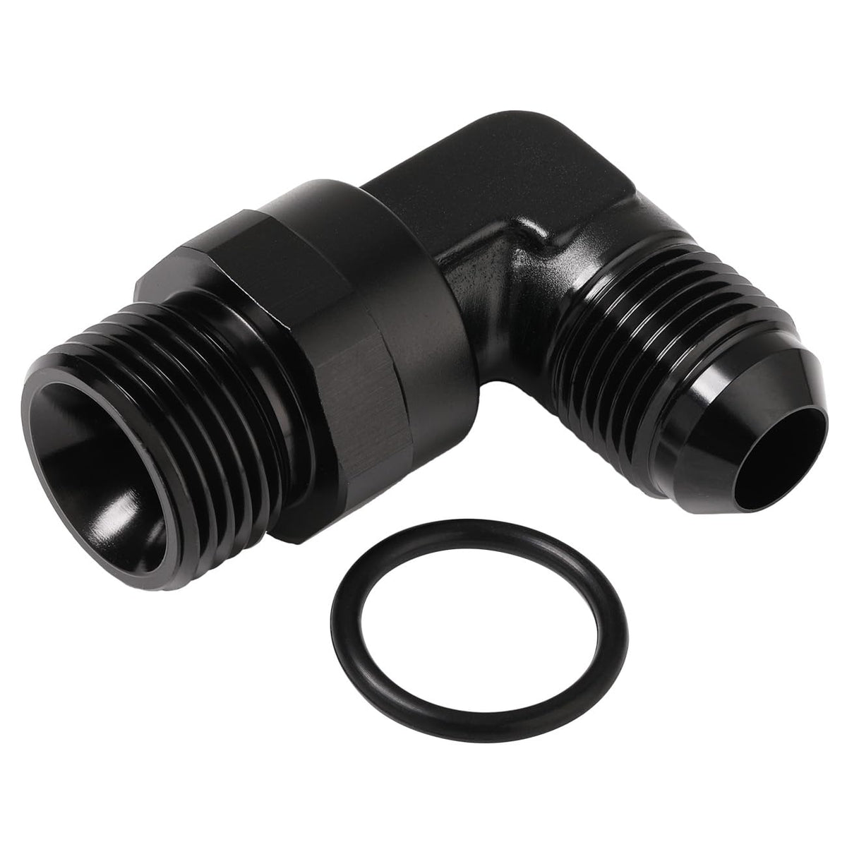 Specifications: Material: 6061 T6 Aluminum Thread Size: -8 AN male flare to -10 ORB O-ring, 90 degree Features: - Manufactured from lightweight 6061-T6 aluminum; Anodized finish for strength, durability and anti-corrosion - The low-profile design is perfect for applications with limited engine clearance - 360 full swivel head allows for easy installation and angle adjustment - Suitable for oil / fuel / coolant / water / air / gas, etc - All Podavelle fittings and adapters are fully compatible with gasoline and alcohol based fuels Notice: Professional installation is highly recommended! (No instructions included)