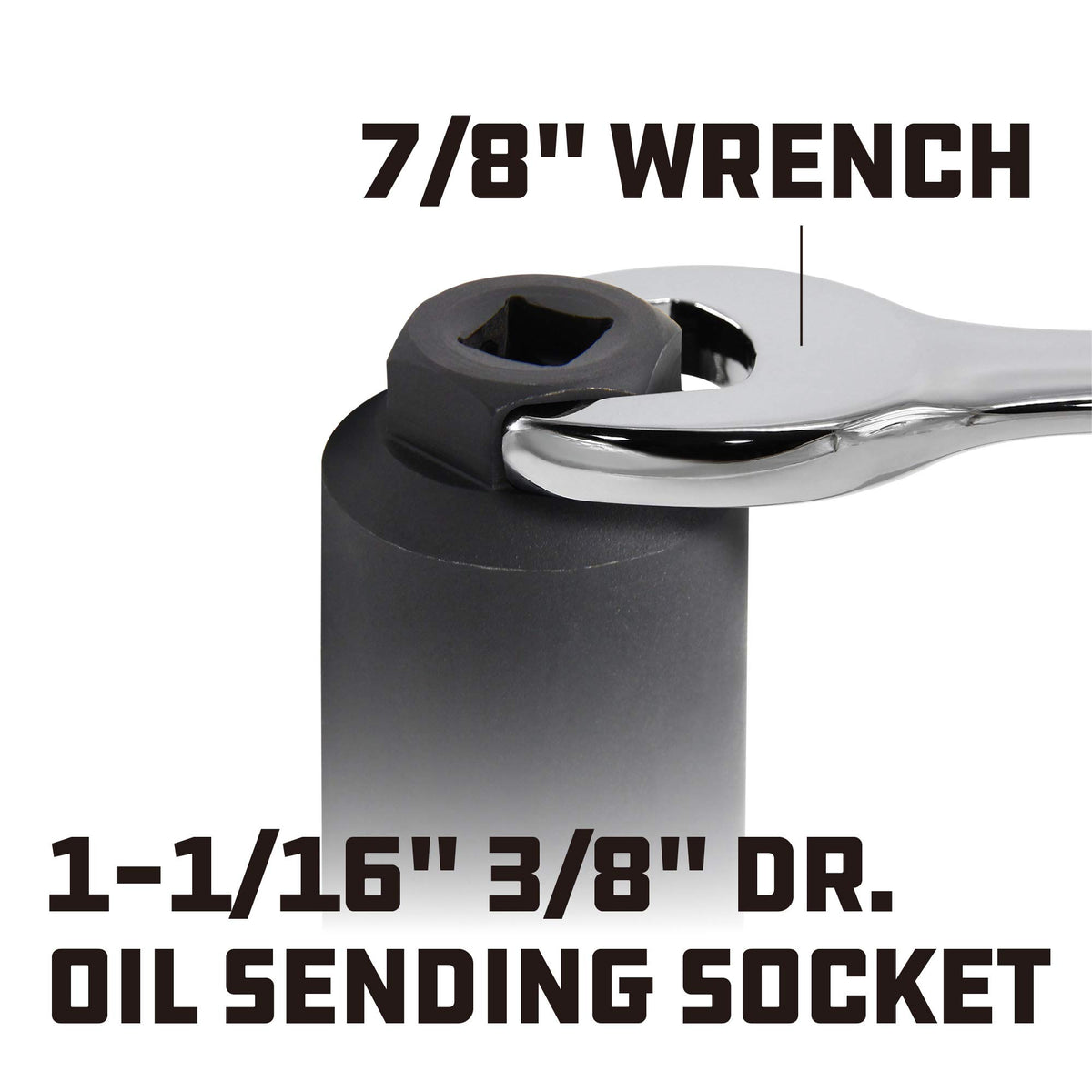 For Removing And Installing The 1-1/16 Inch Hex Oil Pressure Sending Units Found On 1991 And Newer Gm And Some Chrysler Engines. 3/8 Inch Drive Socket Features A 2-5/8 Inch Recess For Switch Body. Socket Can Also Be Turned With A 3/4 Inch End Wrench On The External Hex. Chrome Vanadium Steel For Strength. Lifetime Warranty.