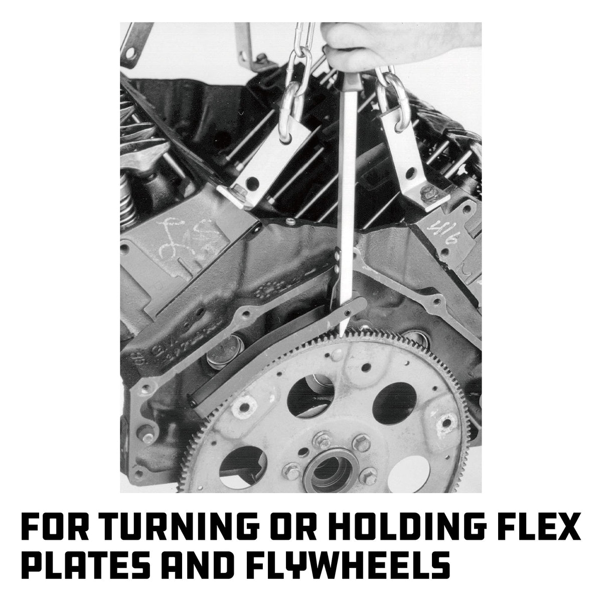 Q: What is the Powerbuilt Alltrade 648455 Flywheel Turning Tool used for?A: The Powerbuilt Alltrade 648455 Flywheel Turning Tool is designed for manually rotating an engine's crankshaft. This tool is particularly useful for performing engine maintenance, timing adjustments, and other tasks that require the flywheel to be turned easily.