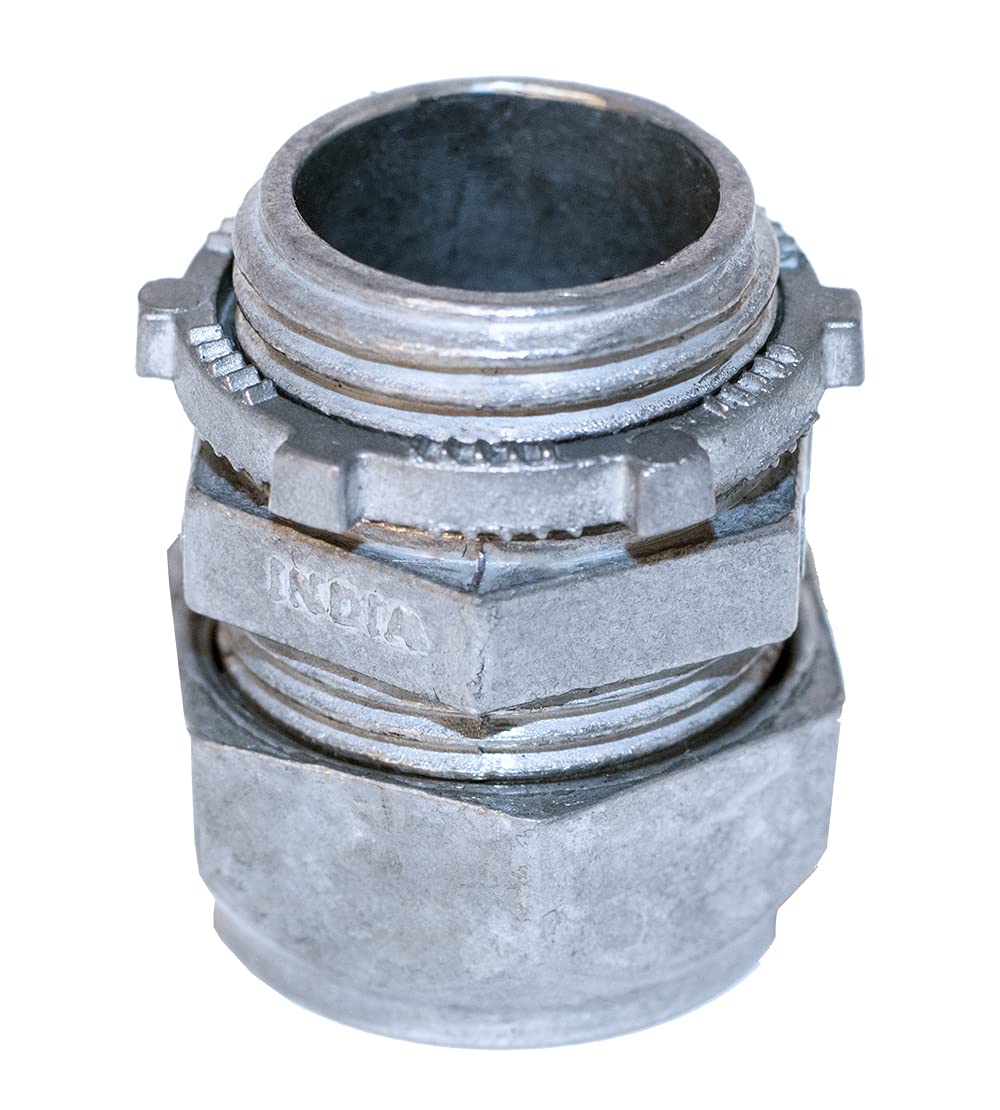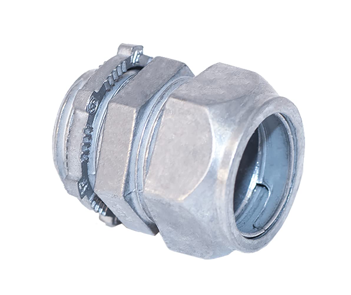 Sigma's EMT Compression Connectors are used to secure and terminate steel EMT conduit to an outlet box or enclosure in dry locations. These die-cast zinc connectors are approved for concrete-tight applications.