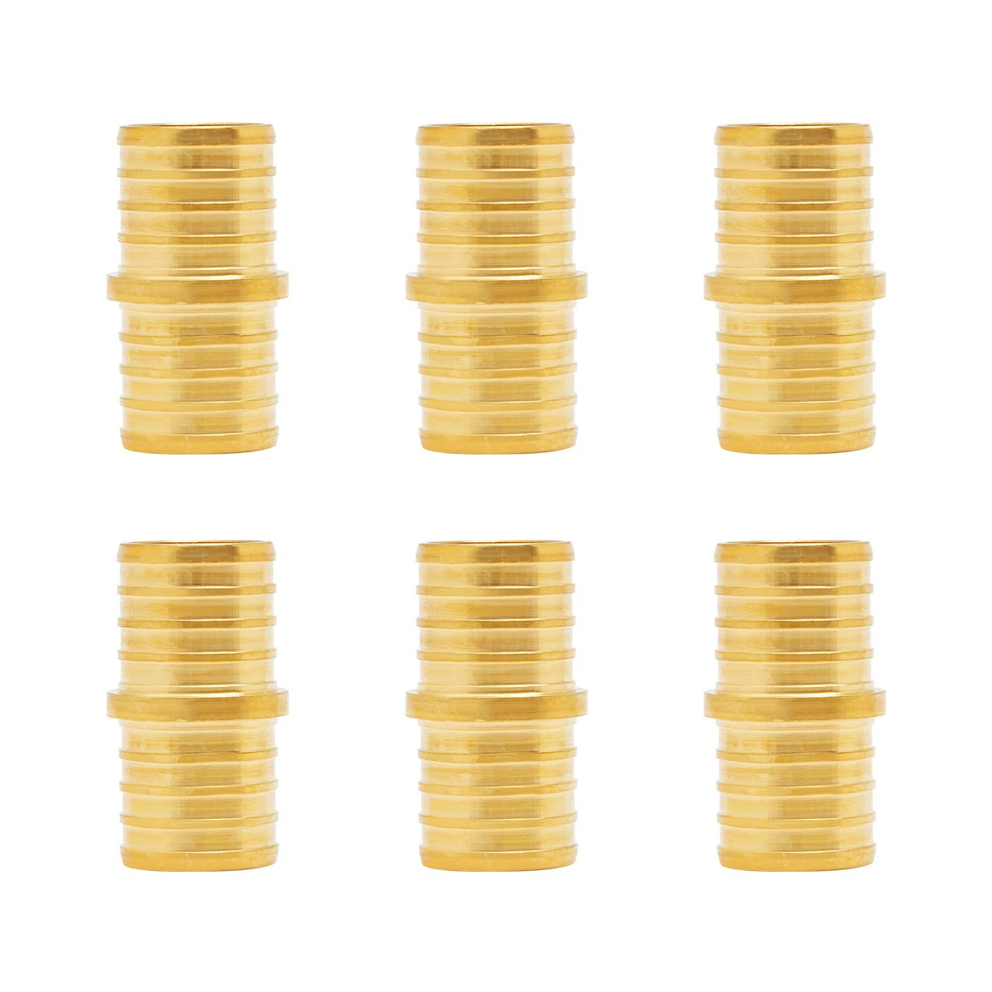 Sungator (6-Pack) Pex 1 Inch Straight Brass Coupling Pex, No Lead Brass Crimp Pipe Fitting