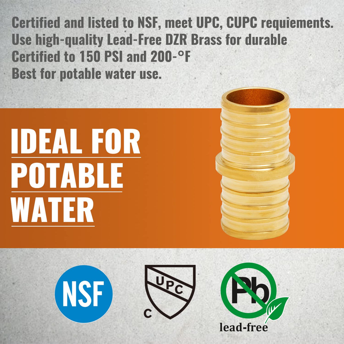Sungator Pex Fittings 1 Inch, 2-Pack 1" Pex Coupling, No Lead Brass, 1 Inch Pex Fittings For Pex Pipe