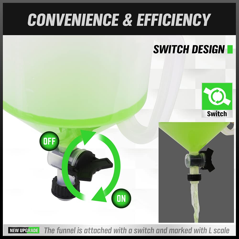 Q: How does the no-spill feature work on this coolant funnel?A: The no-spill feature of the SWANLAKE Coolant Funnel is designed to prevent coolant spills during filling and bleeding processes, ensuring a cleaner and more efficient operation.