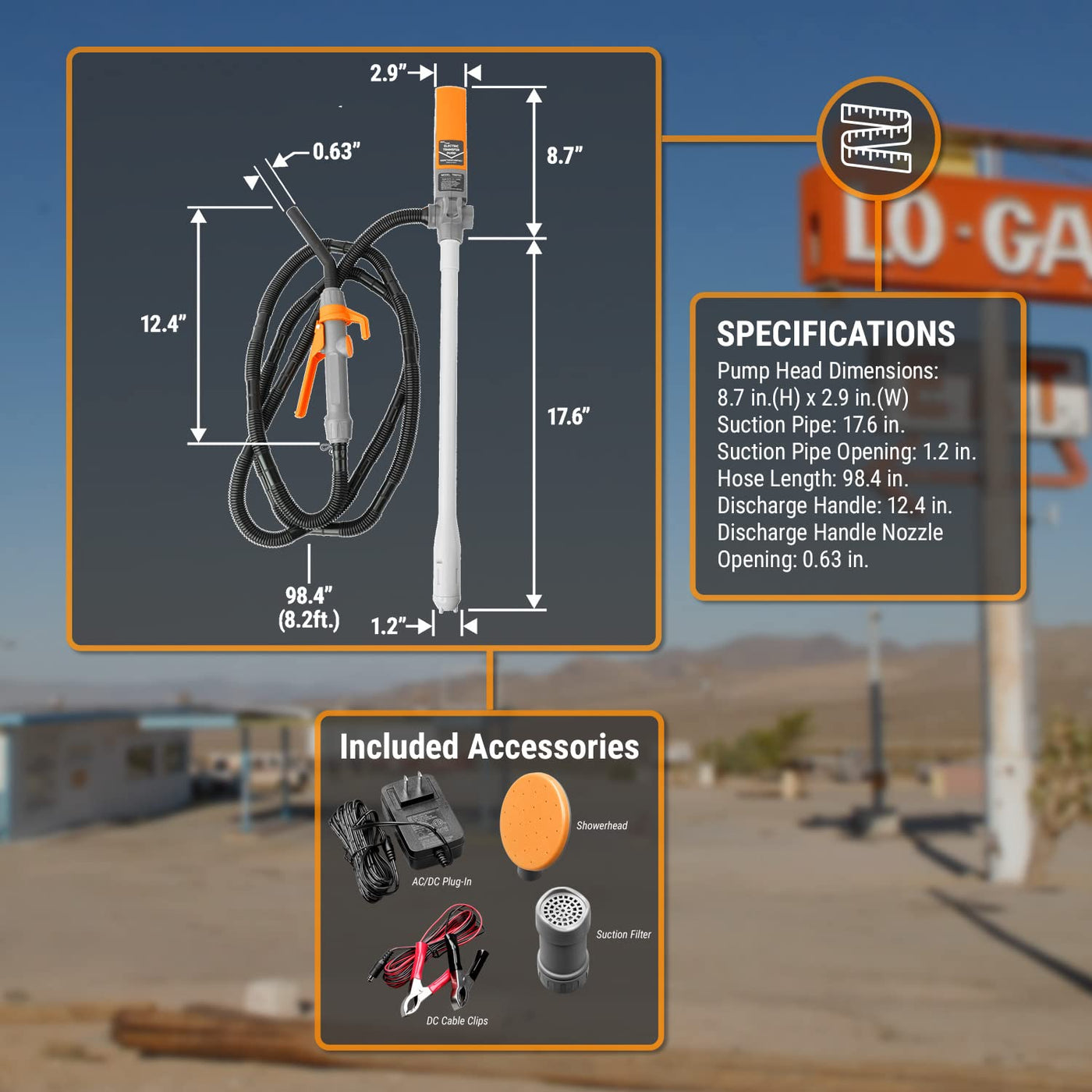 TERA PUMP Fuel Transfer Pump w/Quick Flow Control Nozzle & Telescopic Tube - [ 3X Electric Power Options ] 12V AC/DC Plug-in & D