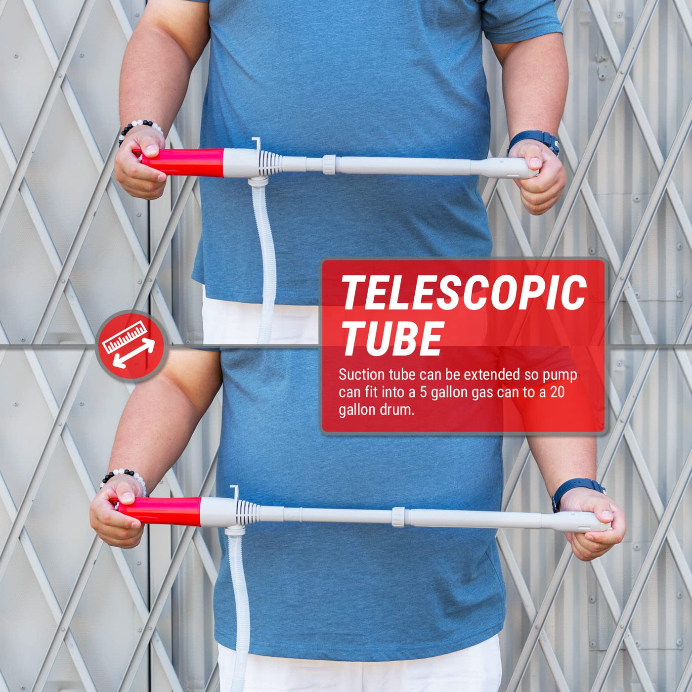TERA PUMP Gas Transfer Pump, 3X More Powerful D Battery, Auto-Stop, No Fuel Loss, Powerful Suction (2.2 GPM), 10ft Extra Long Ho