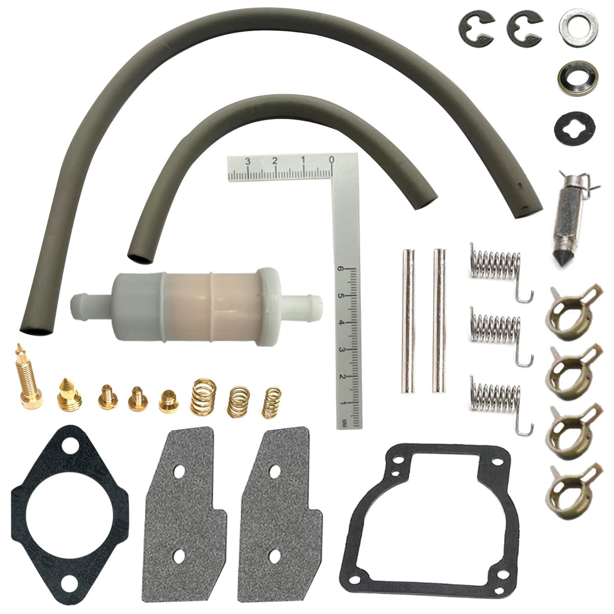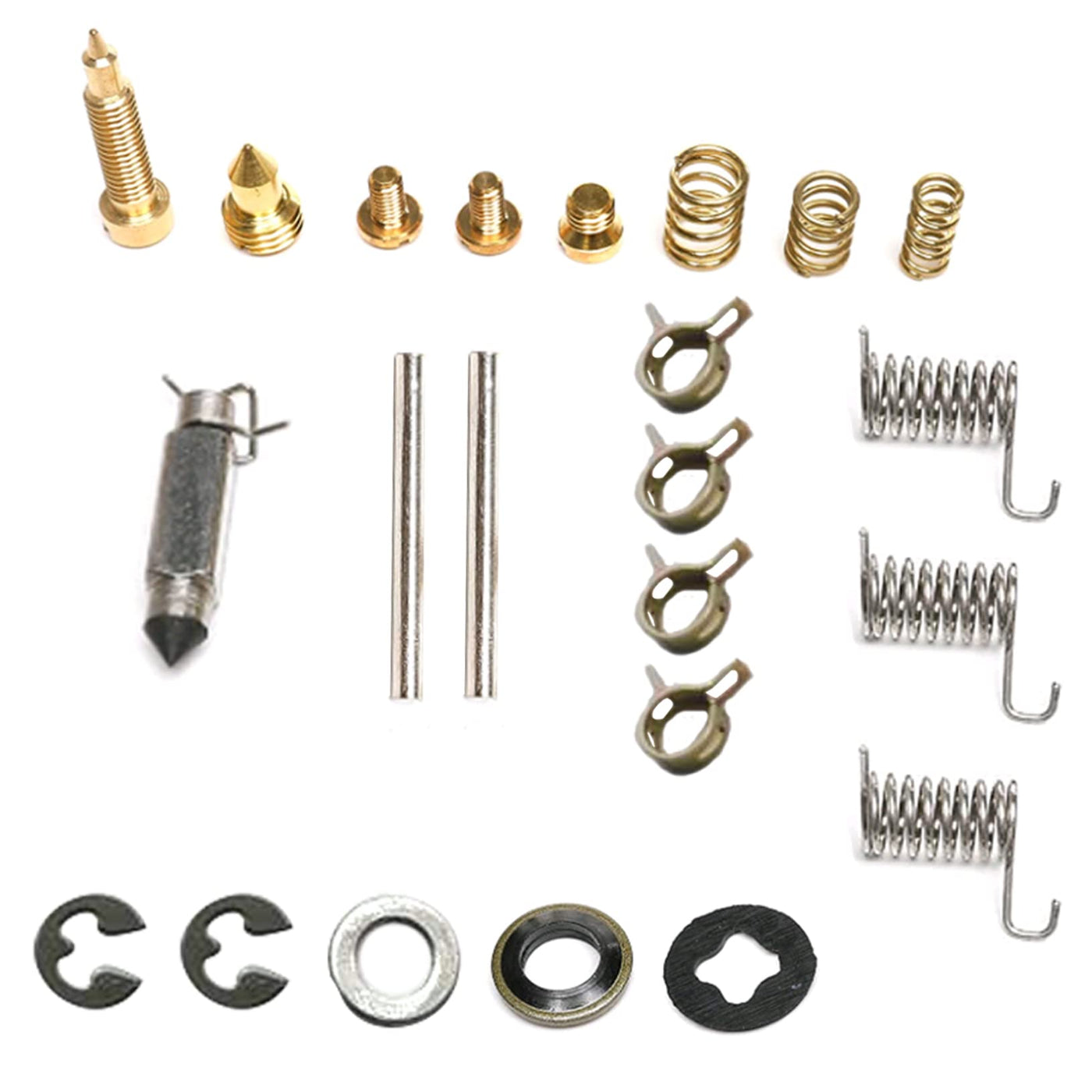 Q: What parts are included in the Trucktok Carburetor Rebuild Kit?A: The Trucktok Carburetor Rebuild Kit includes essential components such as gaskets, O-rings, jets, sealing elements, washers, springs, injection needles, clips, and connection hardware. This comprehensive package is designed to ensure optimal carburetor performance.