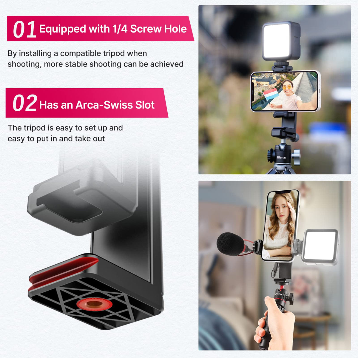 Q: Can I use the ULANZI ST-22 with a tripod or selfie stick?A: Yes, the ULANZI ST-22 can be easily attached to any regular-size tripod, selfie stick, or monopod, providing flexibility for various photography and videography needs.
