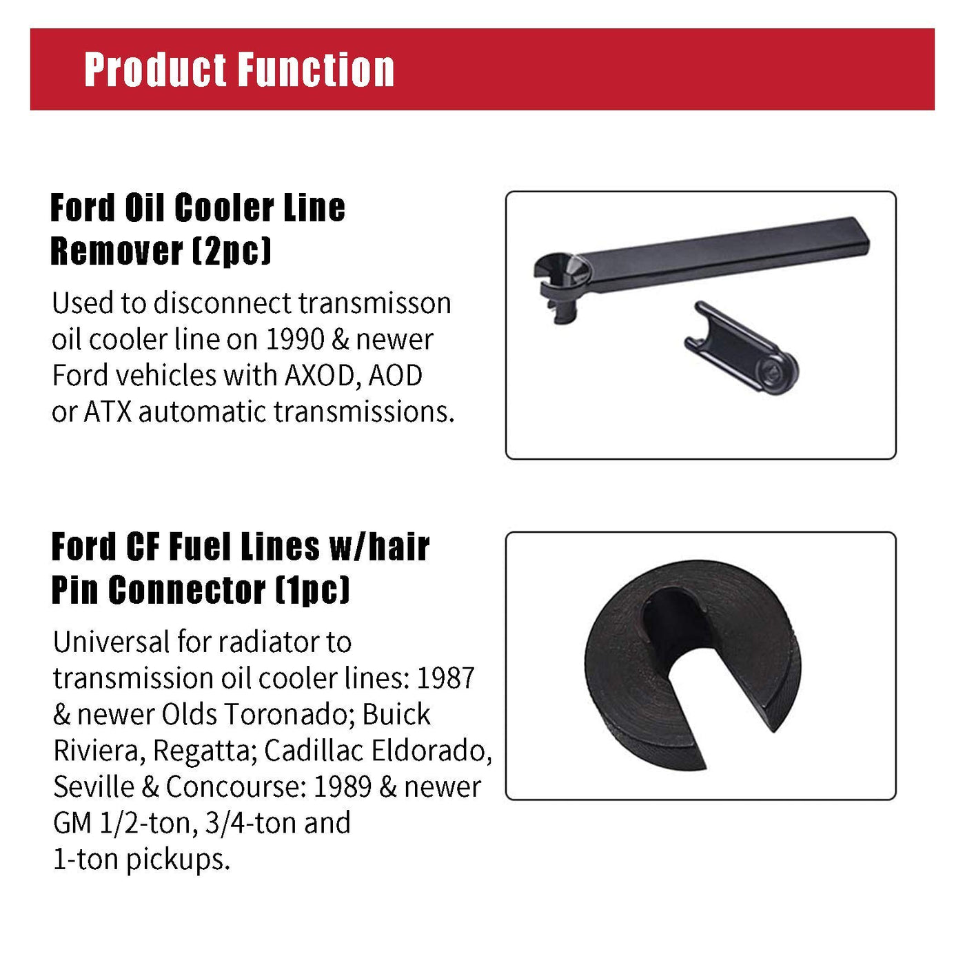 Features: Removing And Disconnecting Tools For Pipe Connectors. For Air Conditioning, Fuel,Air And Oil Pipes. Fits Nearly All Brands Includes A Variety Of Tools Needed To Quickly Disconnect Fuel And Transmission Lines For Most Vehicles. Contents: For Use With Most Fuel Lines, Air Conditioning Lines, Radiator And Heater Hoses Strong, Light And Durable Aluminum Construction Simple Push-On &Amp; Pull-Off Action Popular Sizes 3/16'', 3/8'', 1/2'', 5/8'', 3/4'' And 7/8''. Offset Offset For Those Hard To Reach Areas Fits: 5/16, 1/2, 3/8, 5/8, 3/4, 7/8 4 Colored Quick Ac Fuel Line Quick Disconnetor 3/8'', 1/2'', 5/8'' &Amp; 3/4'' (Plate Size 5.8'' X 4.5'' X 1.3'' (L*W*H)) Will Work For: Fuel Lines. Fuel Filters. Fuel Pressure Regulators. Fuel Return Lines. A/C Fittings. Oil Cooler Lines. Transmission Oil Cooler Lines. Radiator Cooler Lines. Vehicle Specific Applications
