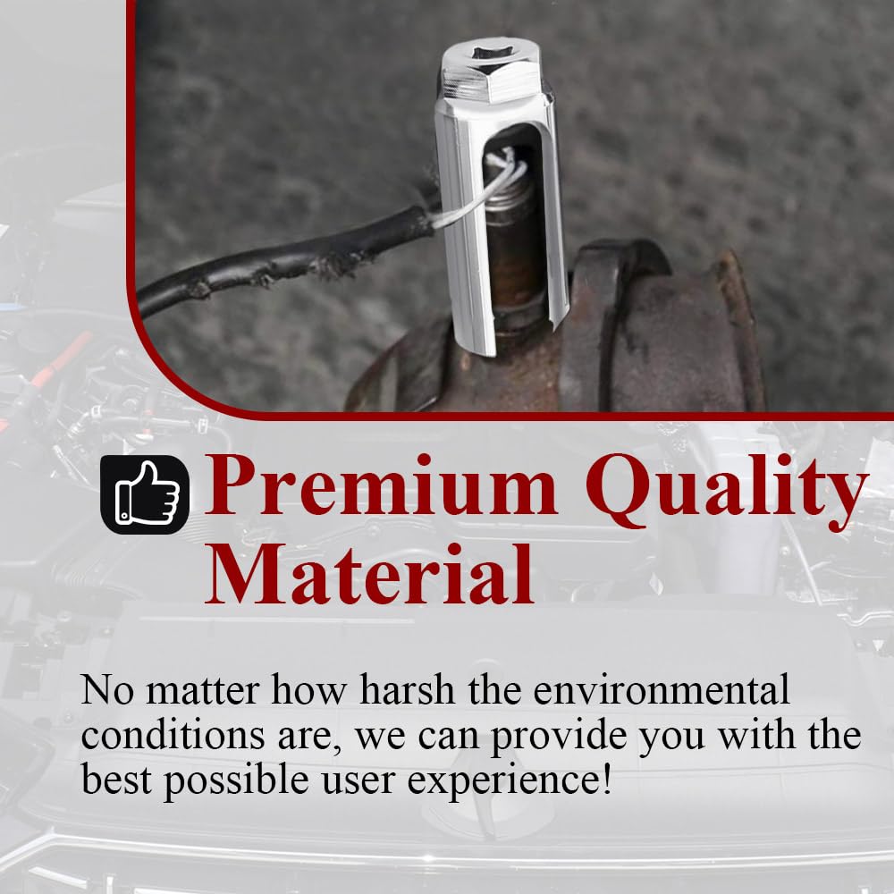 Specifications: Material: Alloy Steel, Chrome Molybdenum Steel Color: White/black Style: Wide mouth/narrow mouth Head shape: 6 corners Square size: 0.39 inches Sleeve size: 0.65 inch (22mm) Function: - The oxygen sensor removers come with notched slots that provide a gap for the harness, providing enough depth to mount on the sensor. - The oxygen sensor spacer has wide mouth and narrow mouth two specifications for you to choose, each specification has white and black two colors to choose, in size and appearance to meet your needs, please choose according to the actual size and situation.