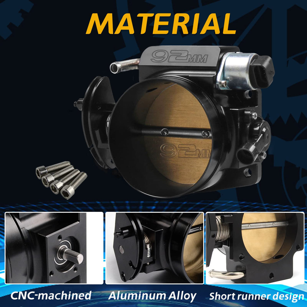 Description: 92Mm Id Short Runner Design Cnc-Machined Made Of Aluminum Alloy Application: For Ls1 Ls2 Ls6 Ls3 Ls7 Lsx Ls 4 Bolt Intake Manifold With Cable Drive Only Features:&Nbsp;The Throttle Body Is Good For A Huge Horsepower Increase Along With Improved Throttle Response. Specification: Bore Size-Back: 3.62'' Flow Rate: 1218 Cfm Working Pressure: 85 Psi Burst Pressure: 245 Psi Package Includes: 1 * 92Mm Throttle Body1 * Throttle Position Sensor (Tps) 1 * Idle Air Control (Iac) Installation:No Instructions Included. Professional Installation Is Highly Recommended!
