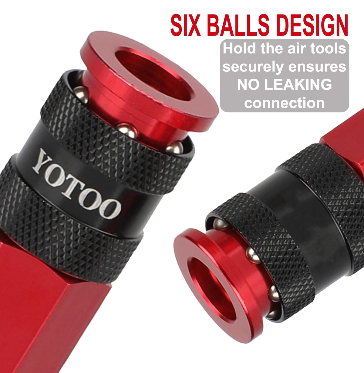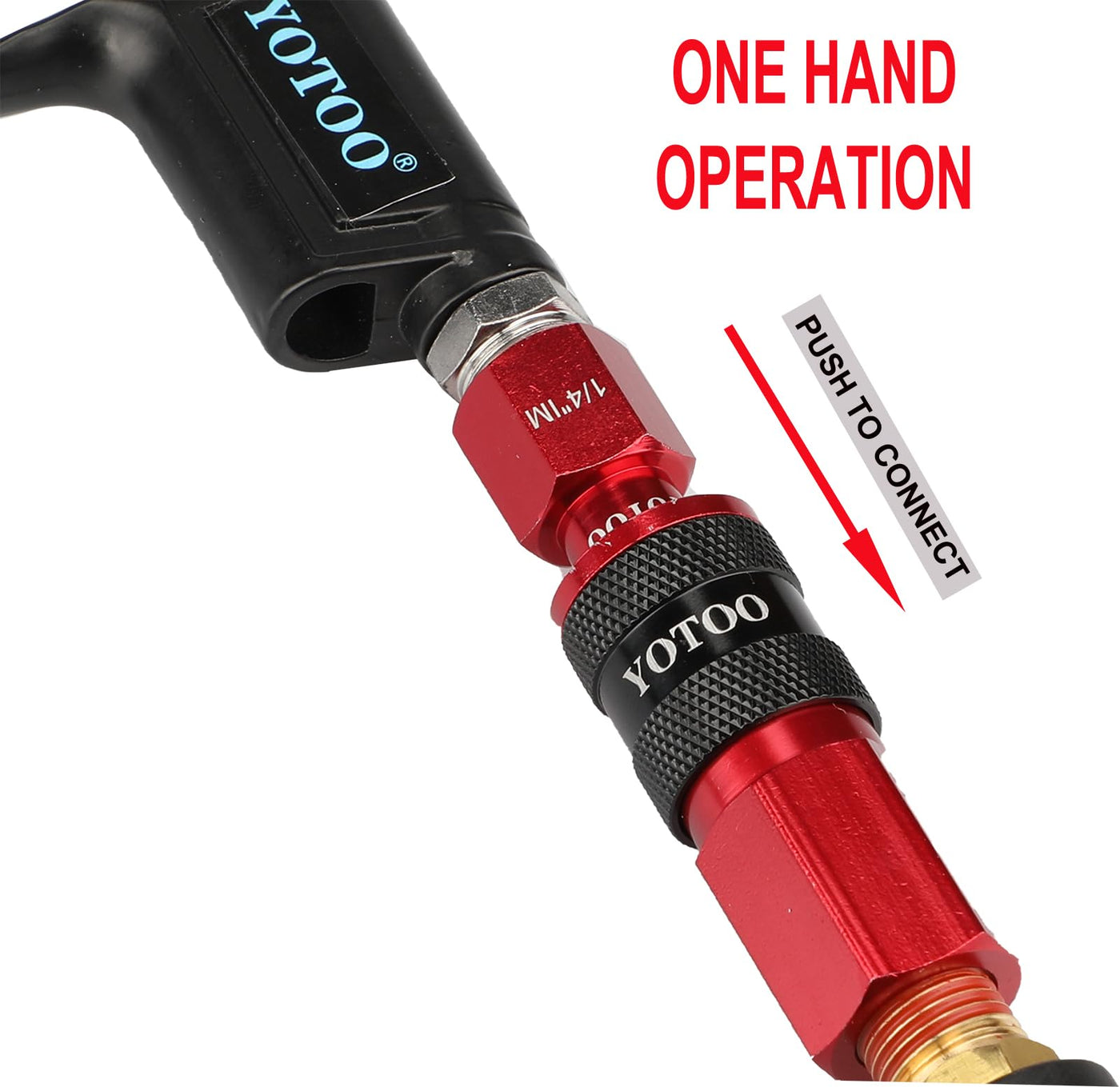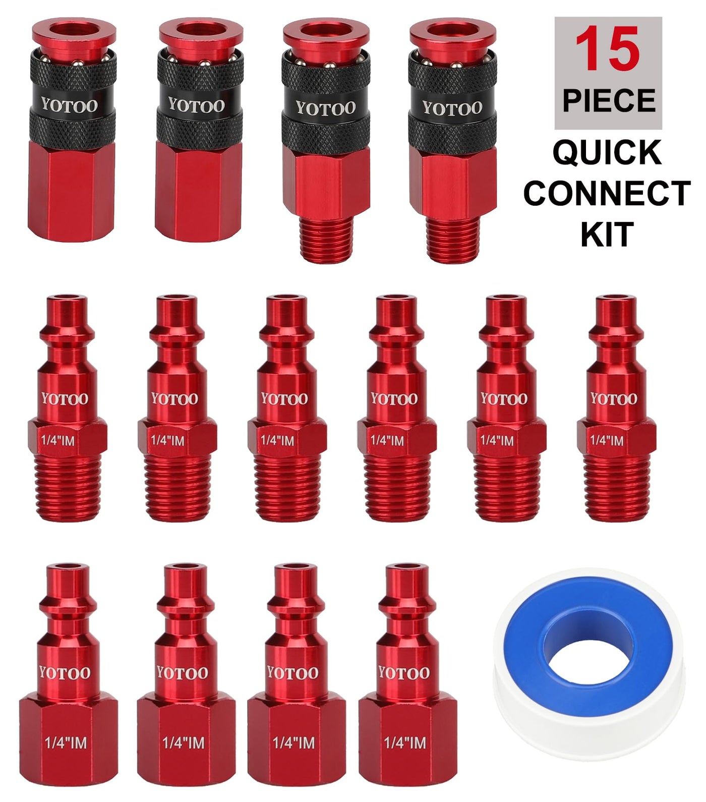 YOTOO 15 Pieces Universal Air Coupler and Plug Kit, Quick Connect Air Hose Fittings, Heavy Duty Aluminum Air Fittings, Lightweight, Push to Connect air tools and air compressor, Red
