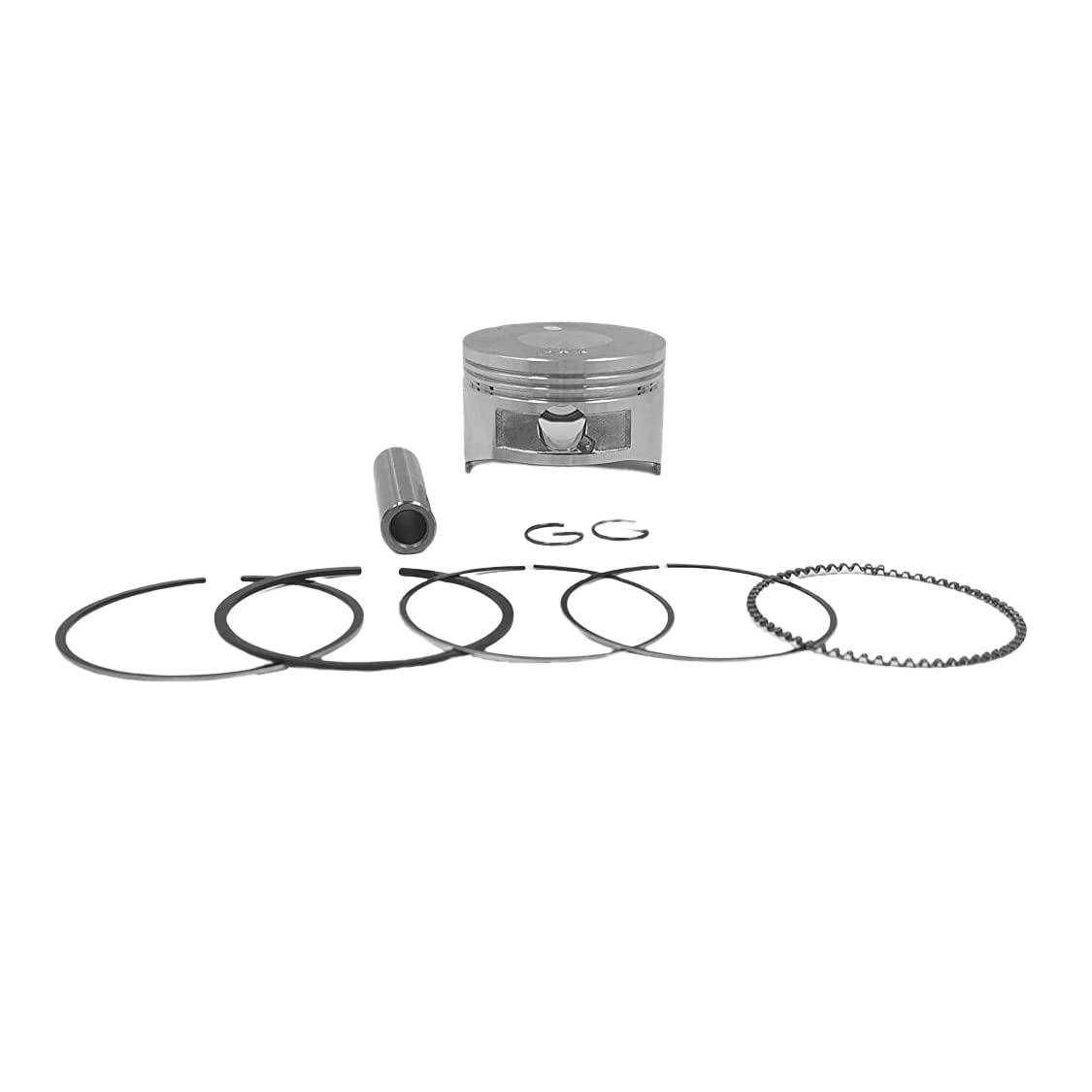 Q: What does the package include when purchasing this piston kit?A: The package includes one piston assembly kit, which contains the piston, piston rings, a pin, and a c-clip.