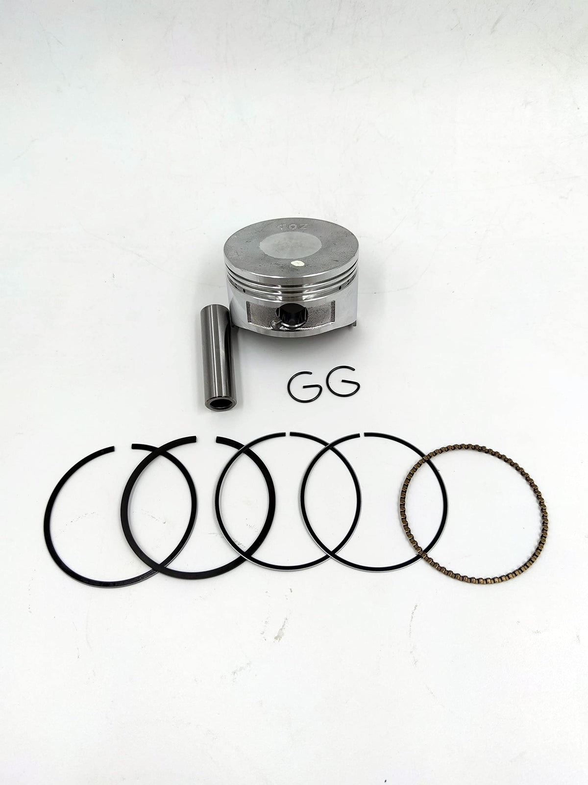Q: What are the part numbers for the components included in this kit?A: The kit includes a piston with part number 13101-Z0D-000 and a piston ring set with part number 13010-Z0D-003. It is important to verify OEM part numbers before purchasing.