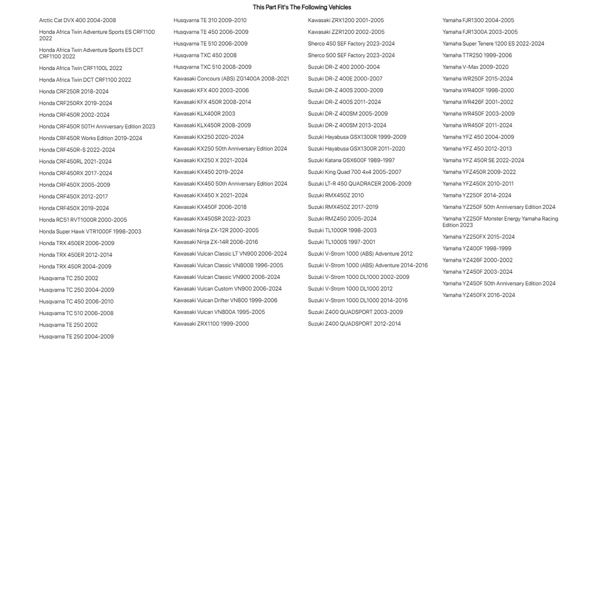 Q: Can I use the Pro X Valve Shim Kit for my Suzuki DR-Z 400?A: Yes, this valve shim kit is specifically designed for the Suzuki DR-Z 400 models from 2000 to 2004, ensuring a proper fit and optimal performance.