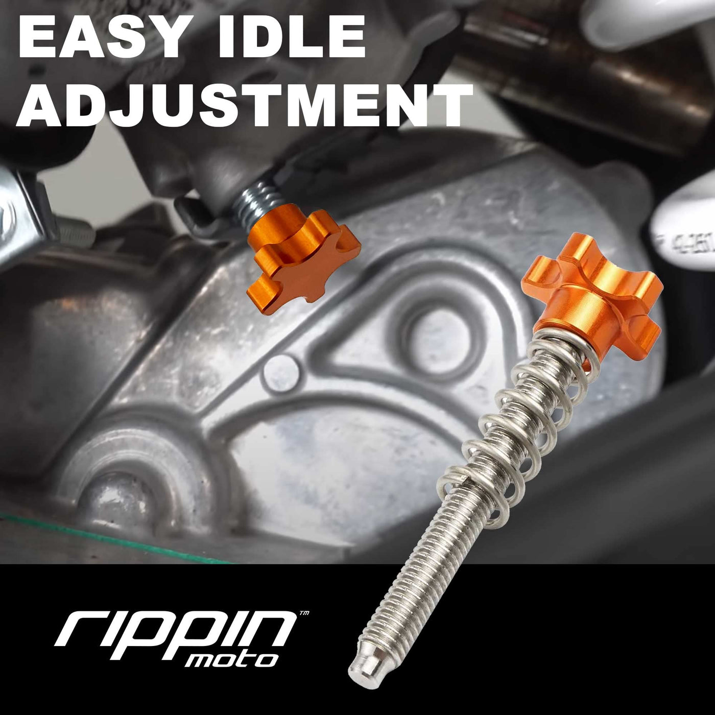 Q: What is the purpose of the Rippin Moto TPi Idle Adjustment Screw?A: The Rippin Moto TPi Idle Adjustment Screw allows you to easily adjust your fuel injection idle RPM without needing any tools, providing a convenient solution for tuning your motorcycle's idle settings.