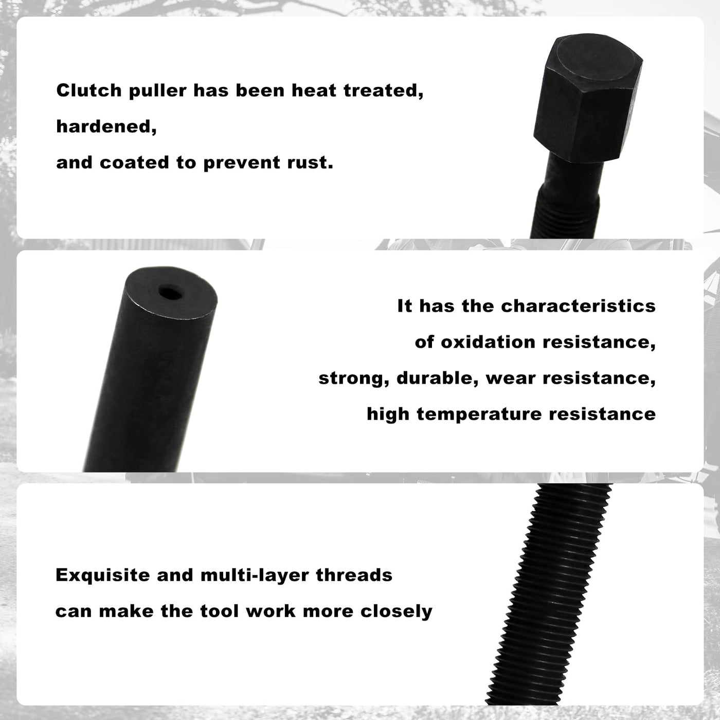Q: How do I ensure the longevity of the clutch puller tool?A: To enhance the longevity of the clutch puller, it is recommended to apply grease to the tool's tip and threads prior to use. This will facilitate smoother operation and help extend the lifespan of the tool.