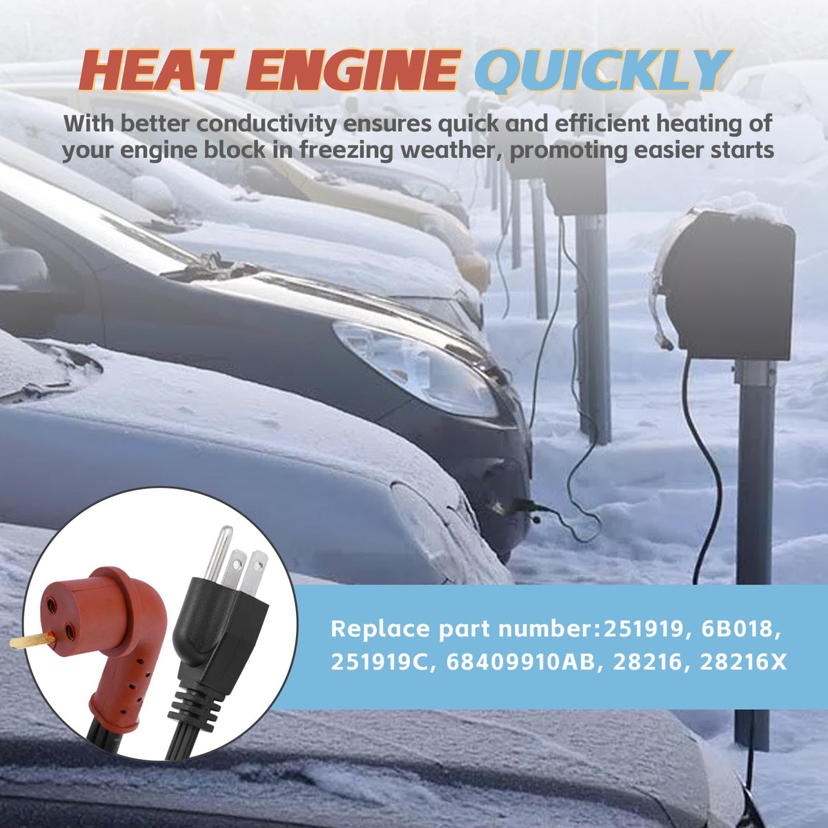 120V Block Heater Cord 251919 for Ford 7.3 6.0 6.4 6.7 L Powerstroke Diesel F250 F350 Dodge Ram Cummins Diesel 5.9, 6.7 L Fits H