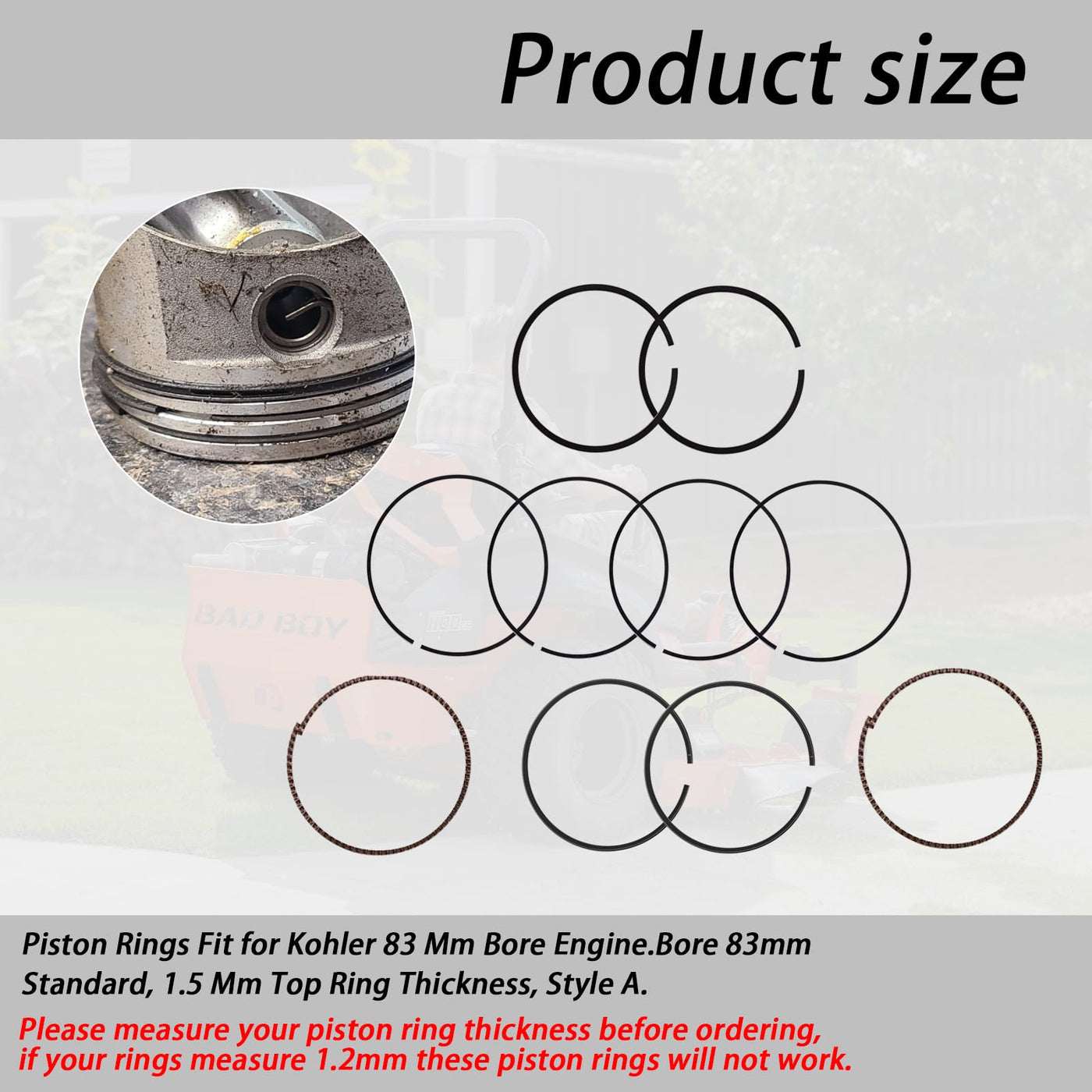 2 Sets of Piston Rings(24-108-05, 24-108-14, 24-108-14-S) Compatible with Kohler Engines 725CC & 747CC Ch25, Ch26, Ch730, Ch735,
