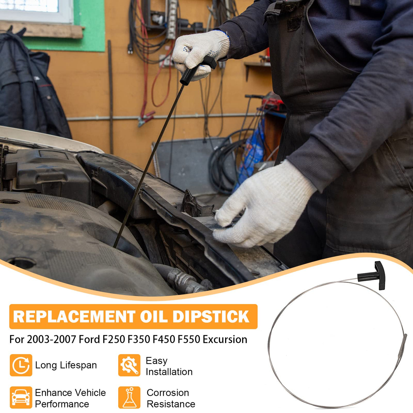 3C3Z6750Aa Ford 6.0 Powerstroke Oil Dipstick For 2003 2004 2005 2006 2007 Ford F250 F350 F450 F550 Super Duty Excursion 6.0 Diesel Engine Oil Dip Stick Indicator Tool Replace Ford 3C3Z-6750-Aa 917-310