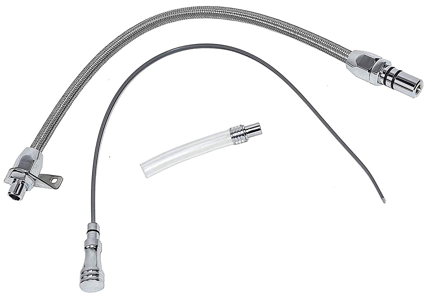A-Team Performance - Transmission Dipstick Oil Tube Flexible Braided Stainless Steel Firewall Mount - Compatible With Chevrolet Chevy Gm 700R4 Auto Parts Silver 26 3/4 Inches - Chrome Handle Finish