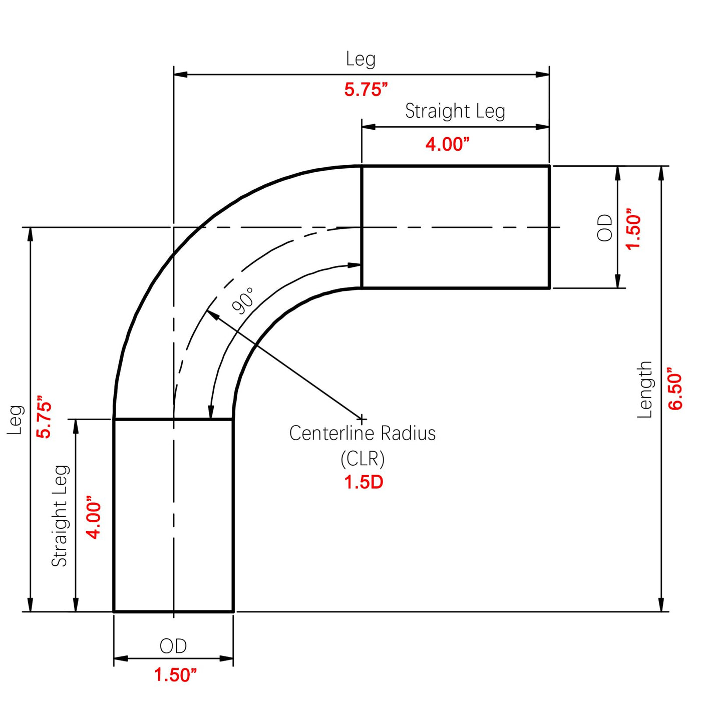 Ac Performance 1.5'' (38Mm) Od 90 Degree Aluminum Elbow Intercooler Pipe Air Intake Tube, 1.2D Radius, Brushed Finish