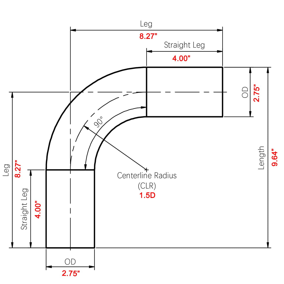 Ac Performance 2.75'' (70Mm) Od 90 Degree Aluminum Elbow Intercooler Pipe Air Intake Tube, 1.5D Radius, Brushed Finish